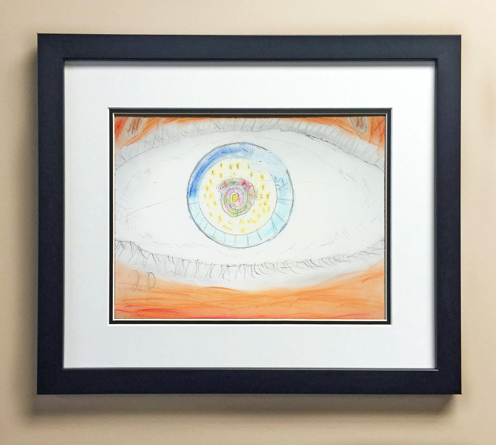 Included with the purchase is the Students Artwork, Frame, double matboard, shatter proof plexiglass, and a ready to hang backerboard with turnbuttons