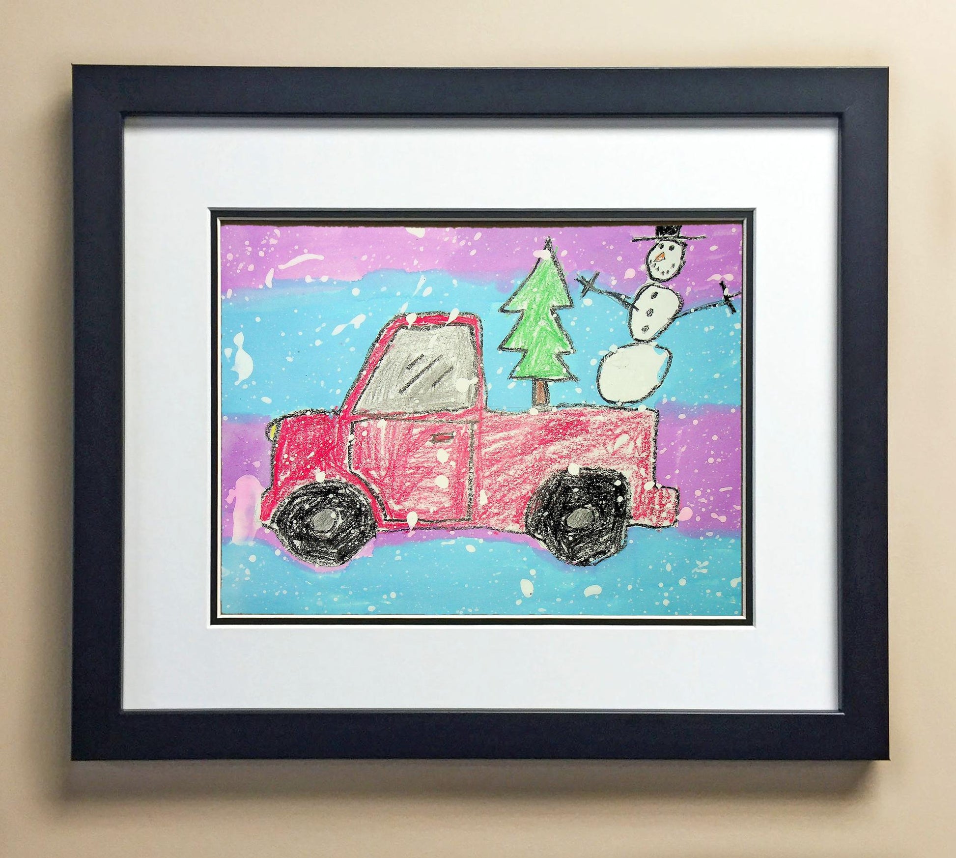 Included with the purchase is the Students Artwork, Frame, double matboard, shatter proof plexiglass, and a ready to hang backerboard with turnbuttons