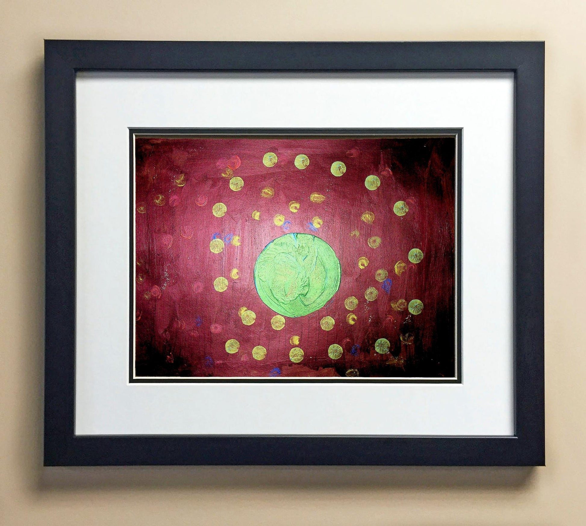 Included with the purchase is the Students Artwork, Frame, double matboard, shatter proof plexiglass, and a ready to hang backerboard with turnbuttons