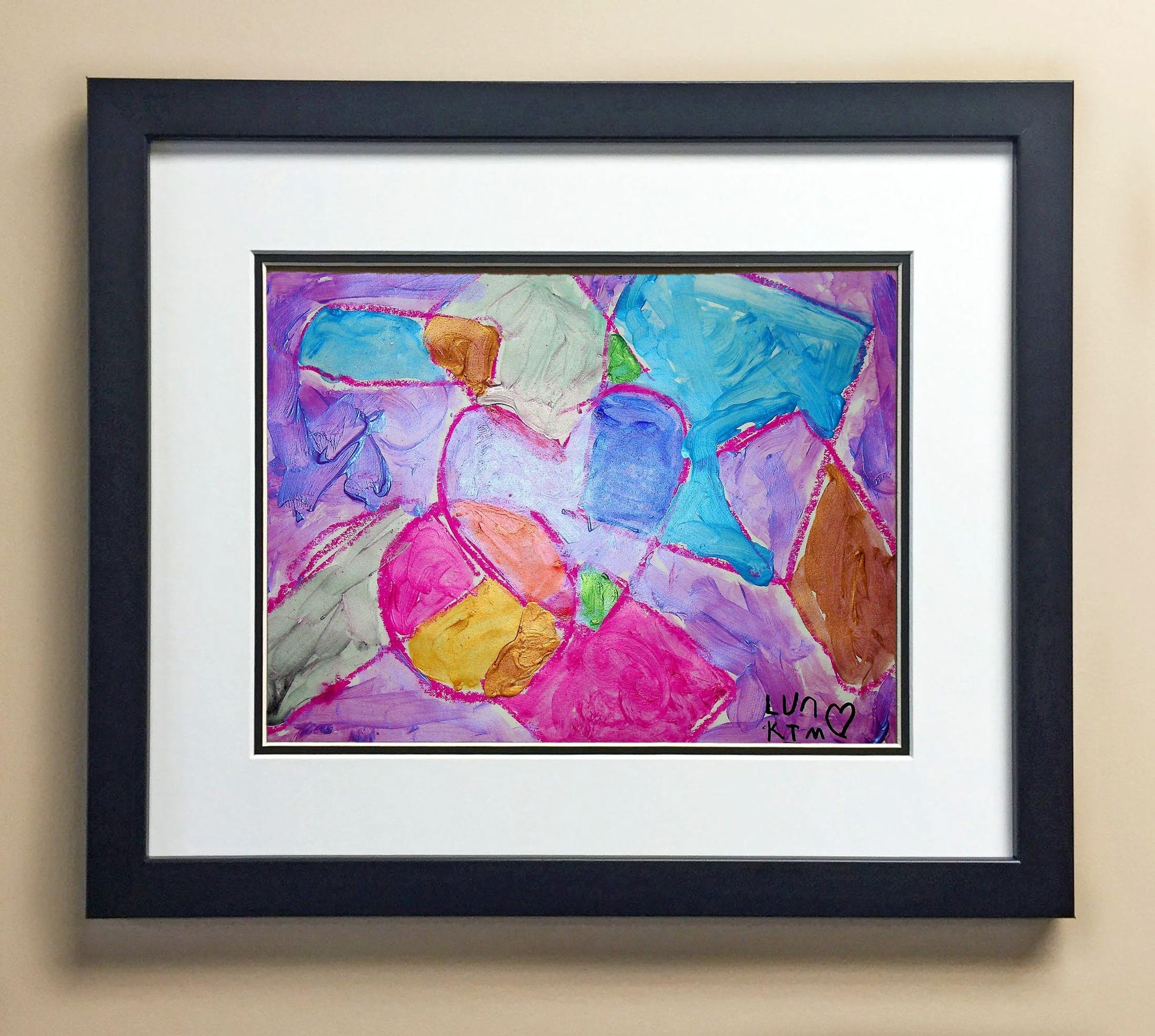 Included with the purchase is the Students Artwork, Frame, double matboard, shatter proof plexiglass, and a ready to hang backerboard with turnbuttons