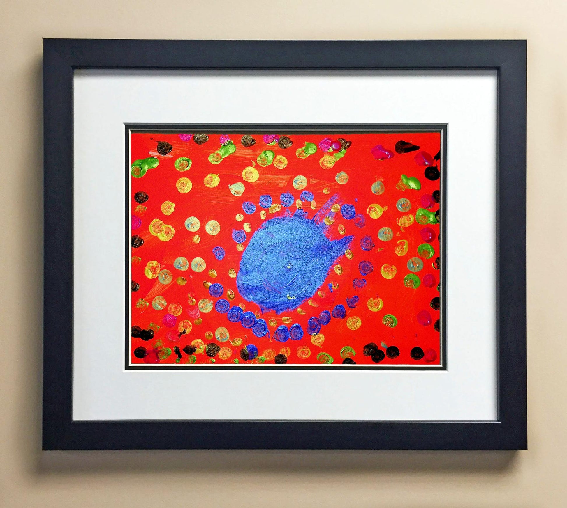 Included with the purchase is the Students Artwork, Frame, double matboard, shatter proof plexiglass, and a ready to hang backerboard with turnbuttons