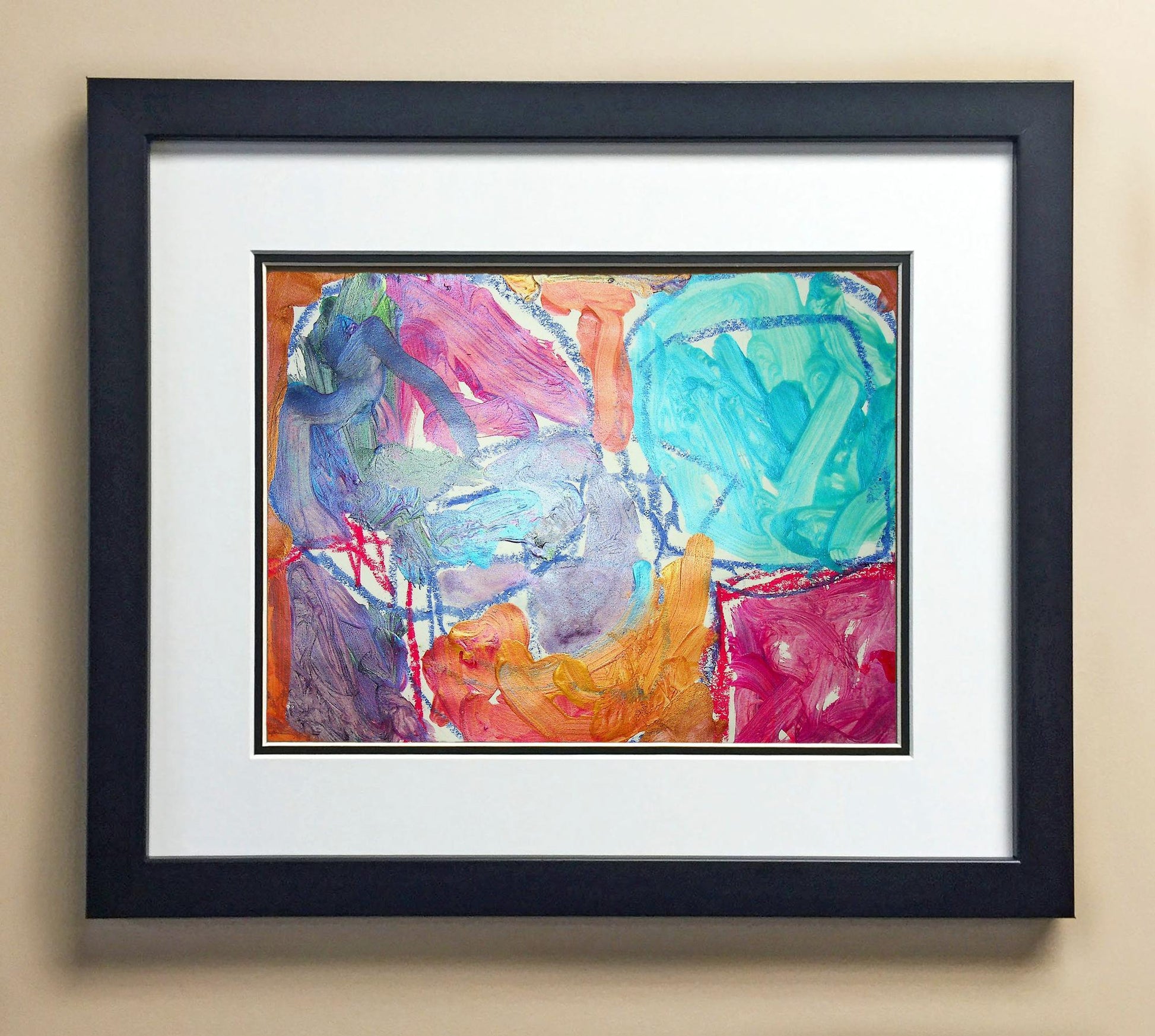 Included with the purchase is the Students Artwork, Frame, double matboard, shatter proof plexiglass, and a ready to hang backerboard with turnbuttons