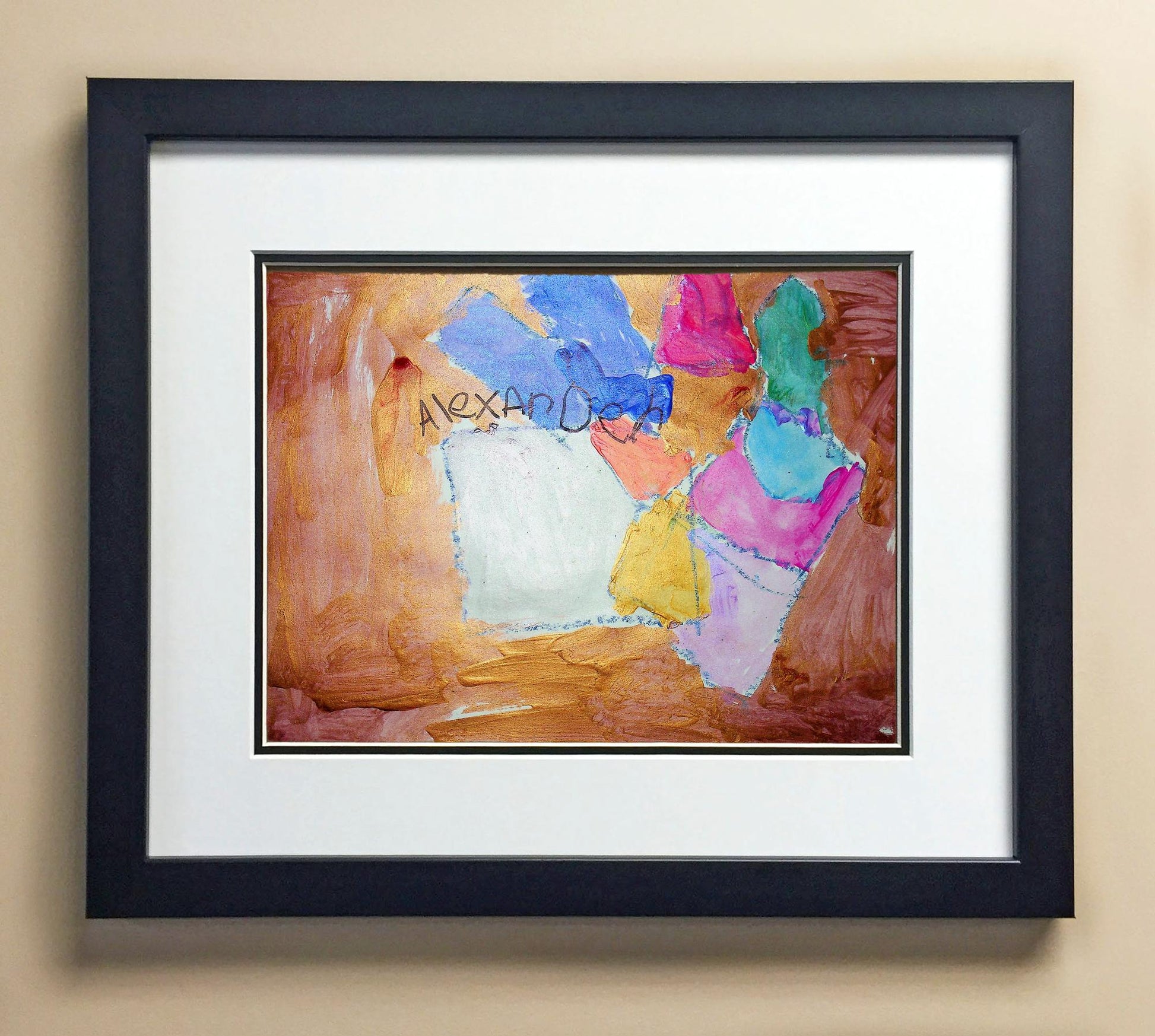 Included with the purchase is the Students Artwork, Frame, double matboard, shatter proof plexiglass, and a ready to hang backerboard with turnbuttons
