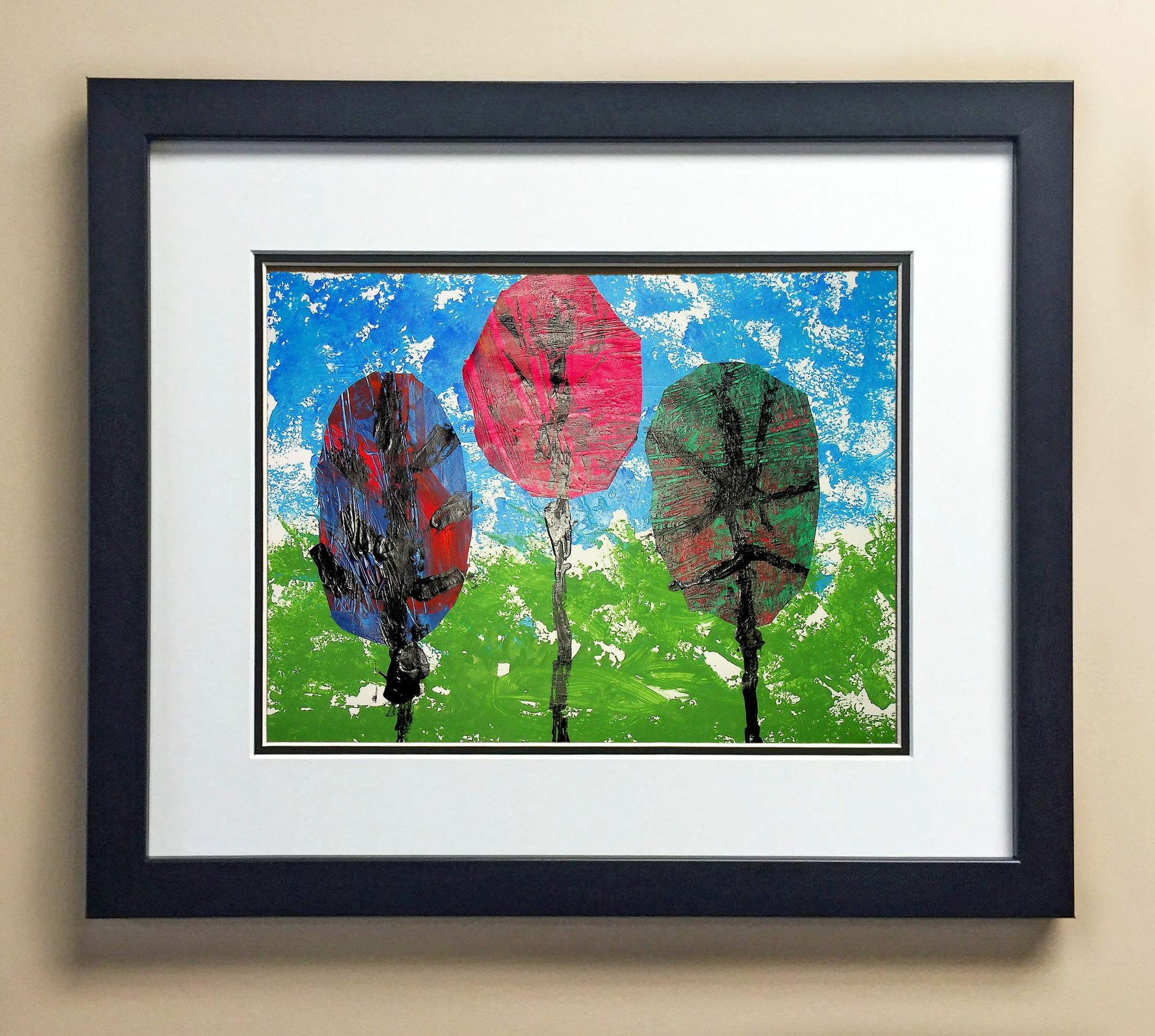 Included with the purchase is the Students Artwork, Frame, double matboard, shatter proof plexiglass, and a ready to hang backerboard with turnbuttons