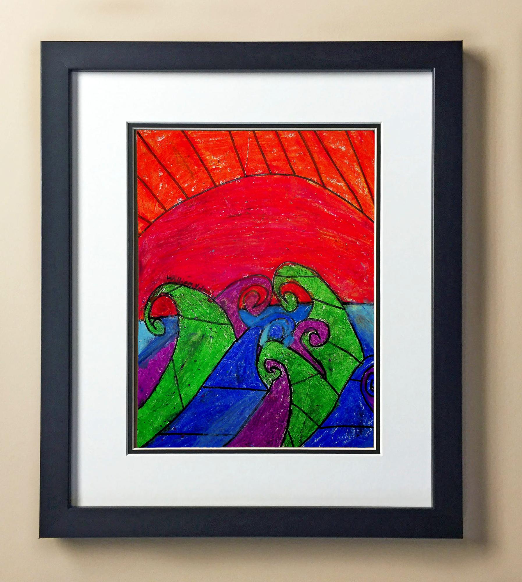 Included with the purchase is the Students Artwork, Frame, double matboard, shatter proof plexiglass, and a ready to hang backerboard with turnbuttons