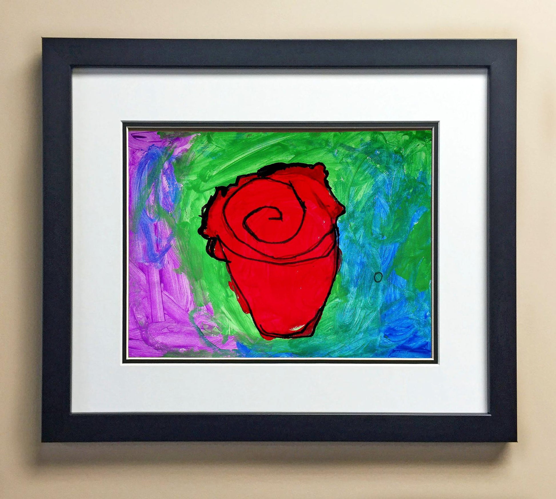 Included with the purchase is the Students Artwork, Frame, double matboard, shatter proof plexiglass, and a ready to hang backerboard with turnbuttons