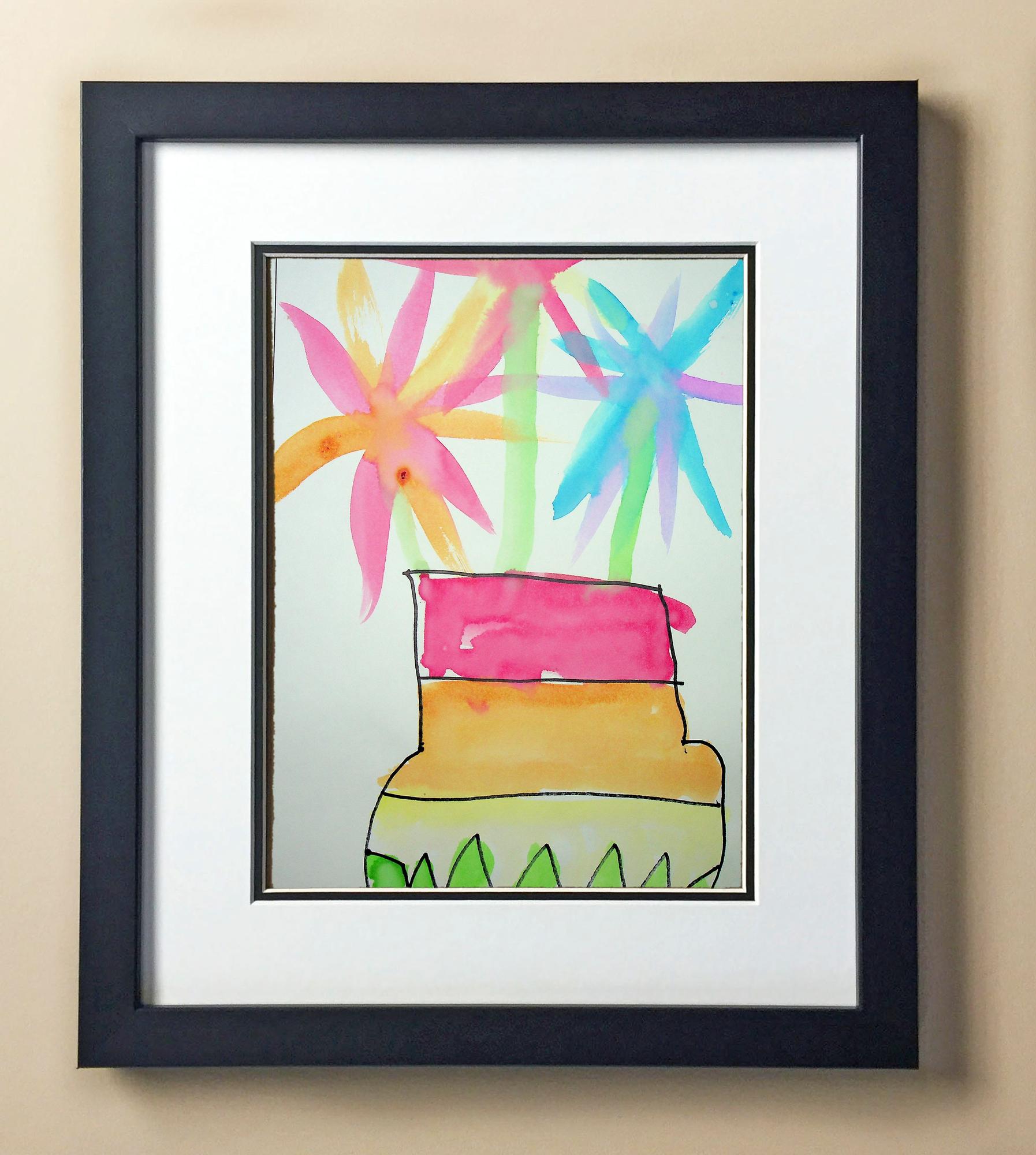 Included with the purchase is the Students Artwork, Frame, double matboard, shatter proof plexiglass, and a ready to hang backerboard with turnbuttons