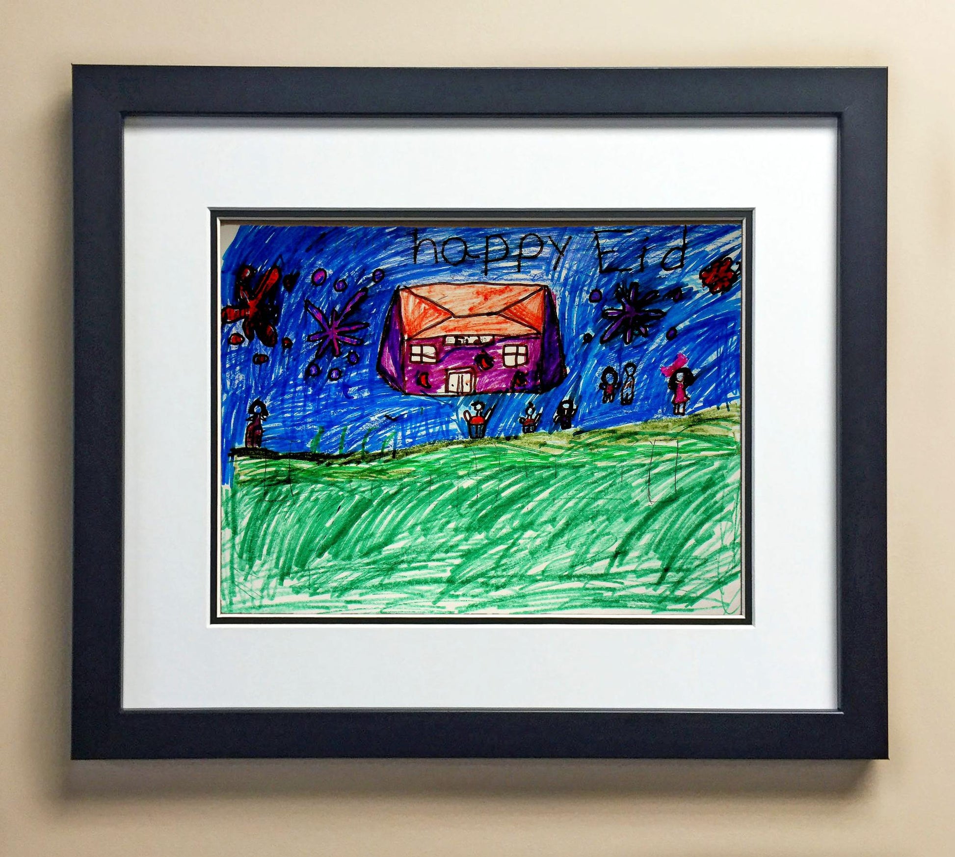 Included with the purchase is the Students Artwork, Frame, double matboard, shatter proof plexiglass, and a ready to hang backerboard with turnbuttons
