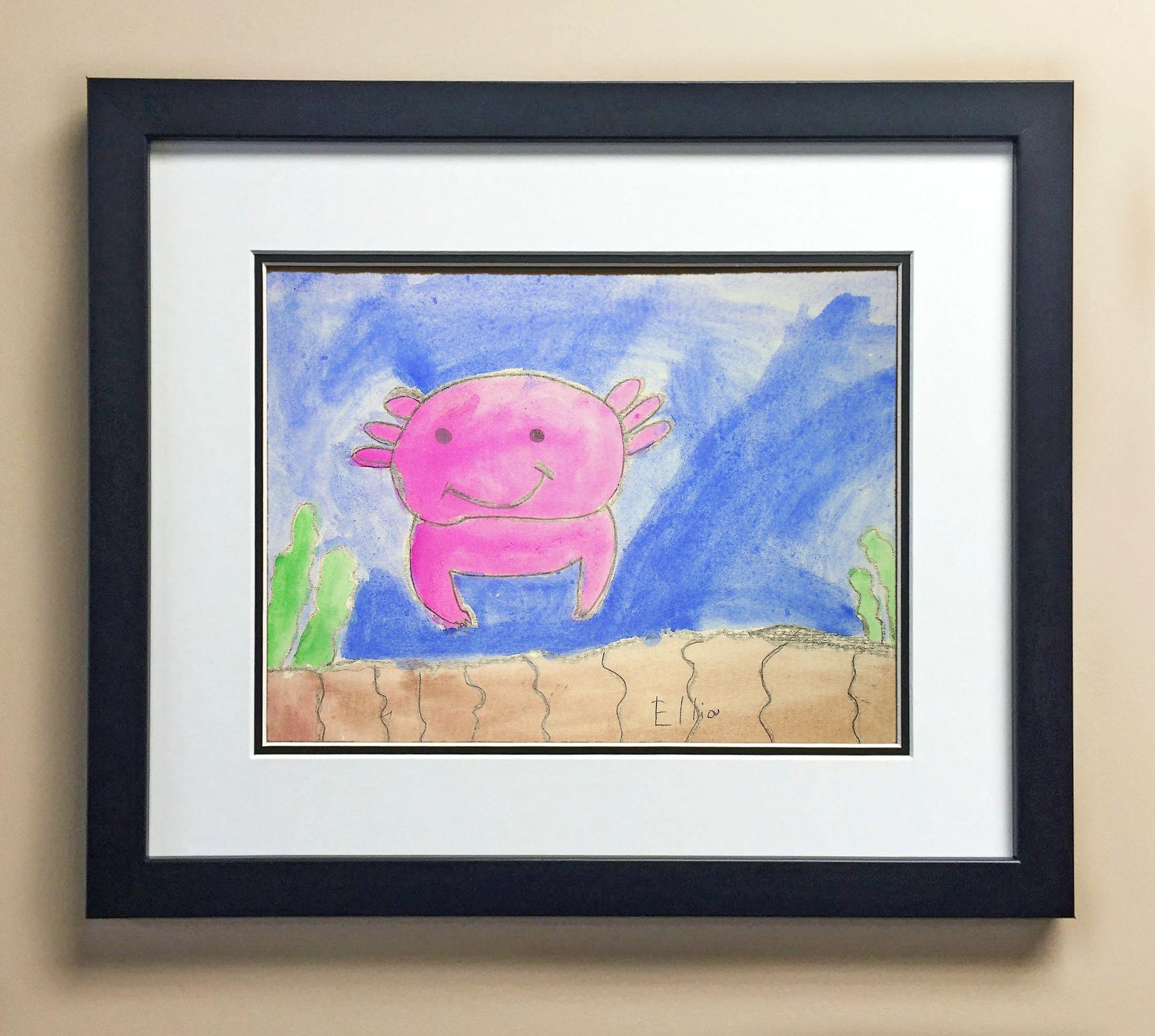 Included with the purchase is the Students Artwork, Frame, double matboard, shatter proof plexiglass, and a ready to hang backerboard with turnbuttons