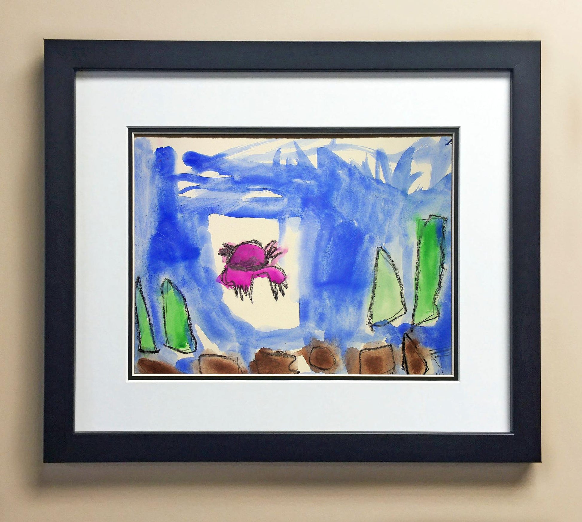 Included with the purchase is the Students Artwork, Frame, double matboard, shatter proof plexiglass, and a ready to hang backerboard with turnbuttons
