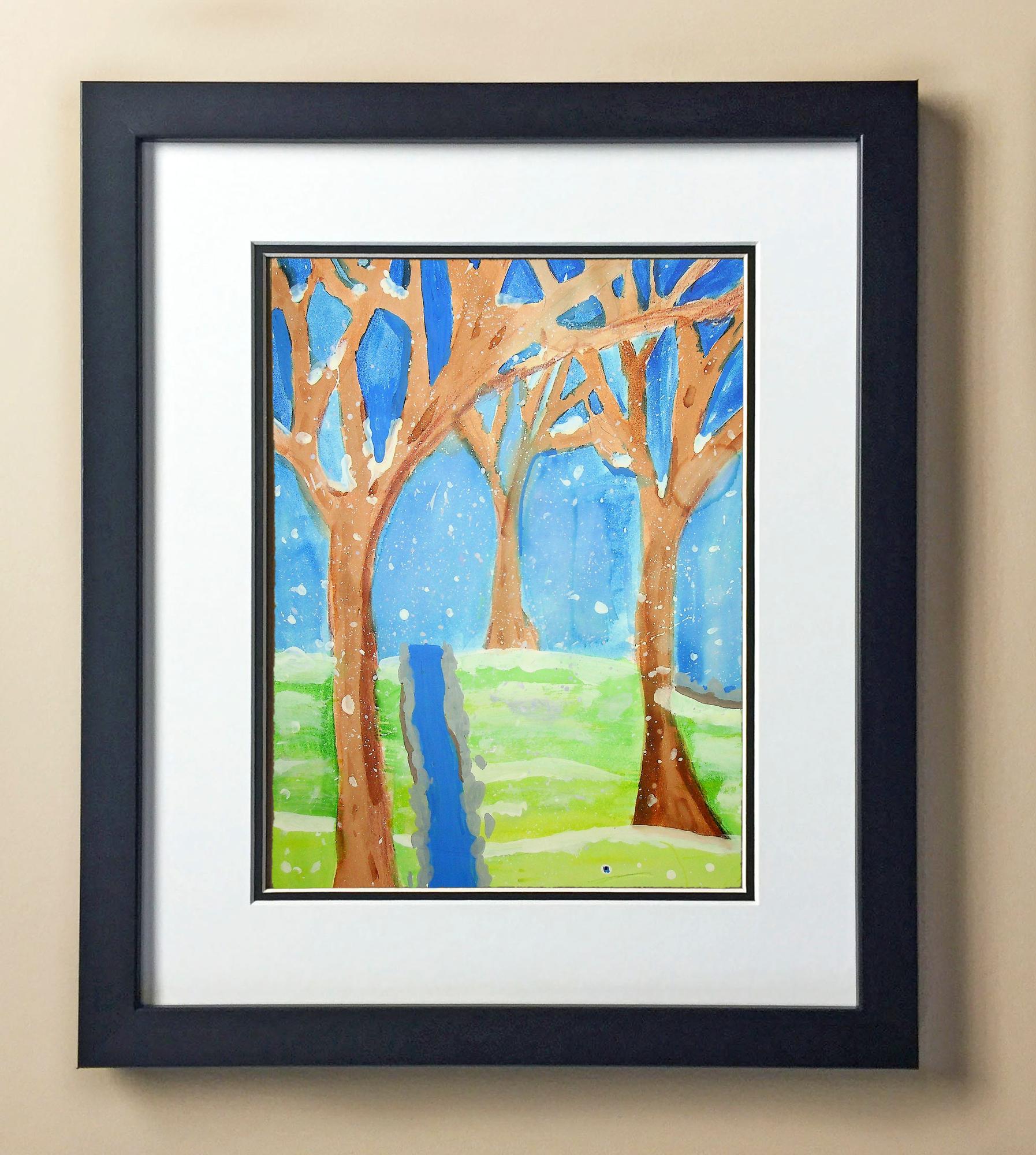Included with the purchase is the Students Artwork, Frame, double matboard, shatter proof plexiglass, and a ready to hang backerboard with turnbuttons