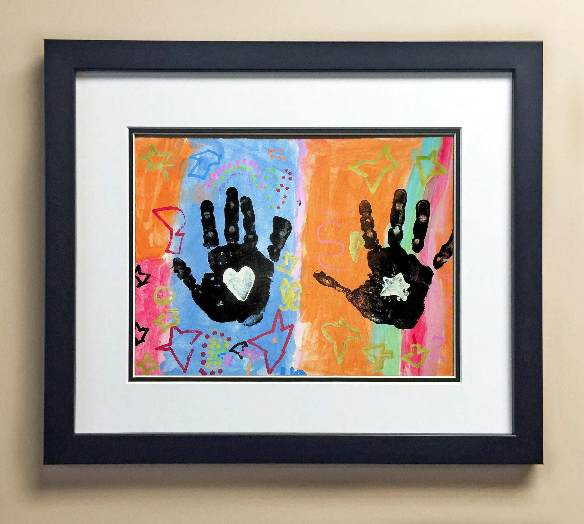 Included with the purchase is the Students Artwork, Frame, double matboard, shatter proof plexiglass, and a ready to hang backerboard with turnbuttons
