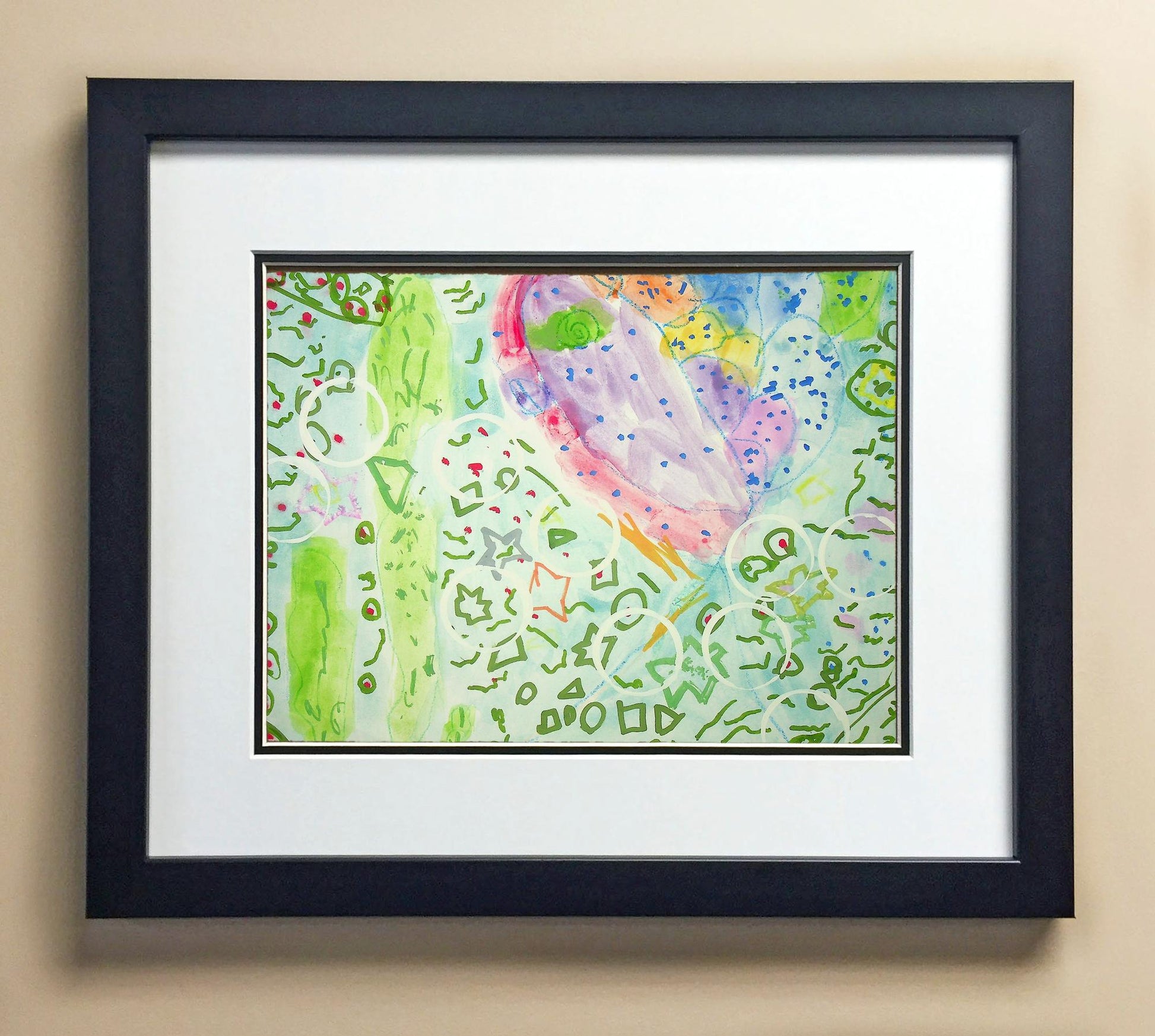 Included with the purchase is the Students Artwork, Frame, double matboard, shatter proof plexiglass, and a ready to hang backerboard with turnbuttons
