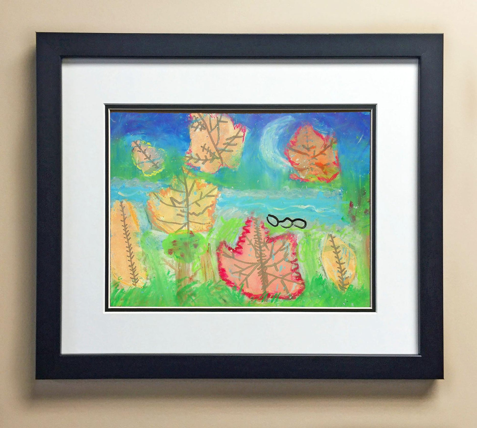 Included with the purchase is the Students Artwork, Frame, double matboard, shatter proof plexiglass, and a ready to hang backerboard with turnbuttons