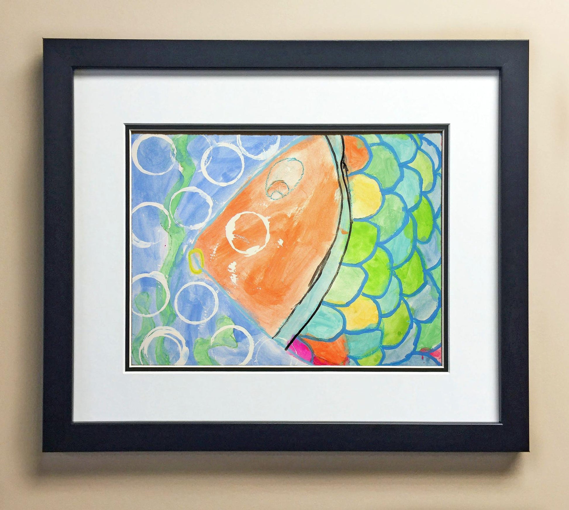 Included with the purchase is the Students Artwork, Frame, double matboard, shatter proof plexiglass, and a ready to hang backerboard with turnbuttons
