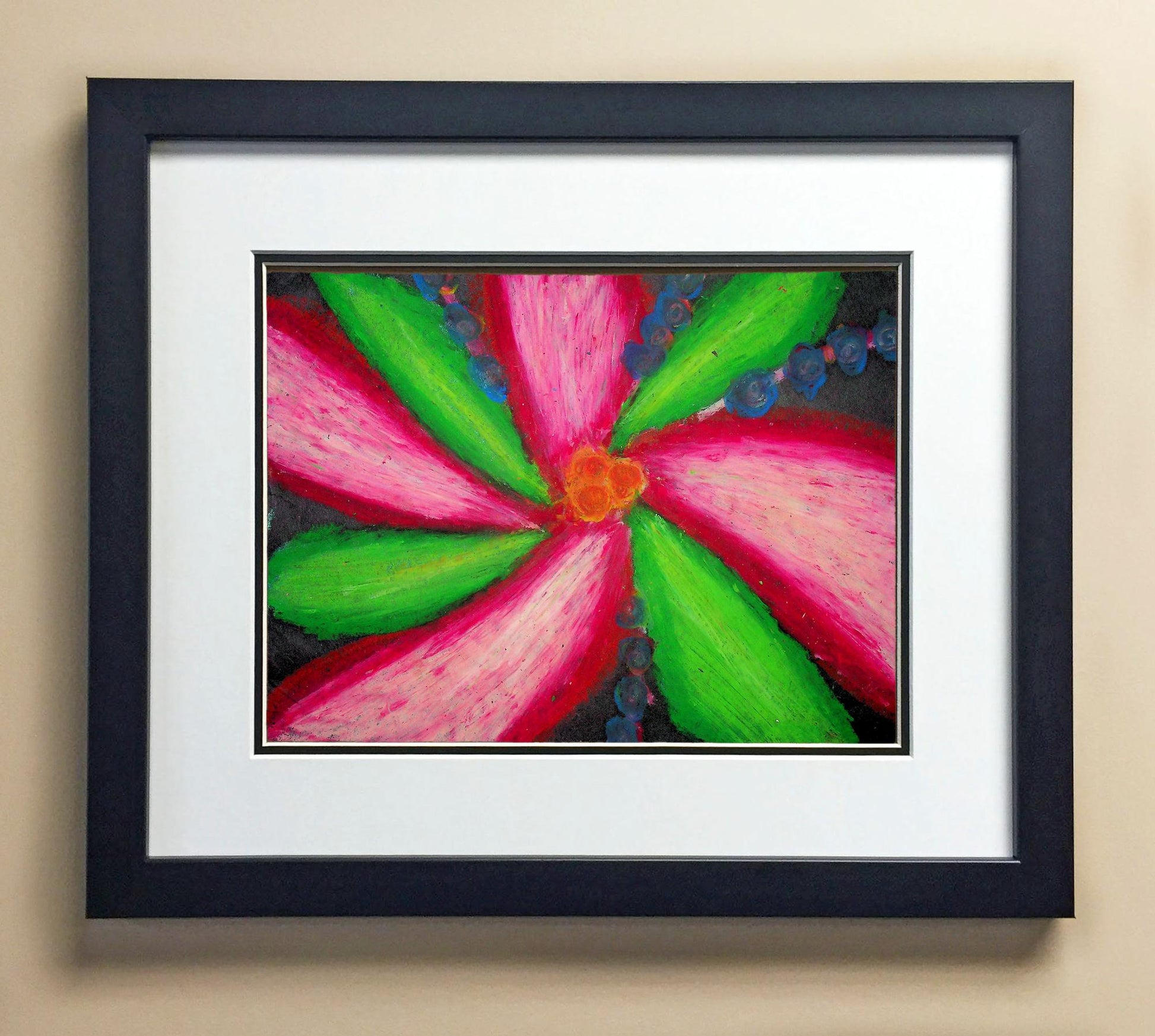 Included with the purchase is the Students Artwork, Frame, double matboard, shatter proof plexiglass, and a ready to hang backerboard with turnbuttons
