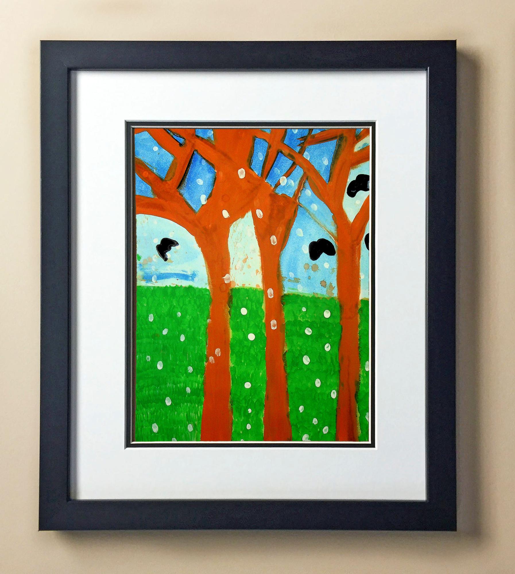 Included with the purchase is the Students Artwork, Frame, double matboard, shatter proof plexiglass, and a ready to hang backerboard with turnbuttons