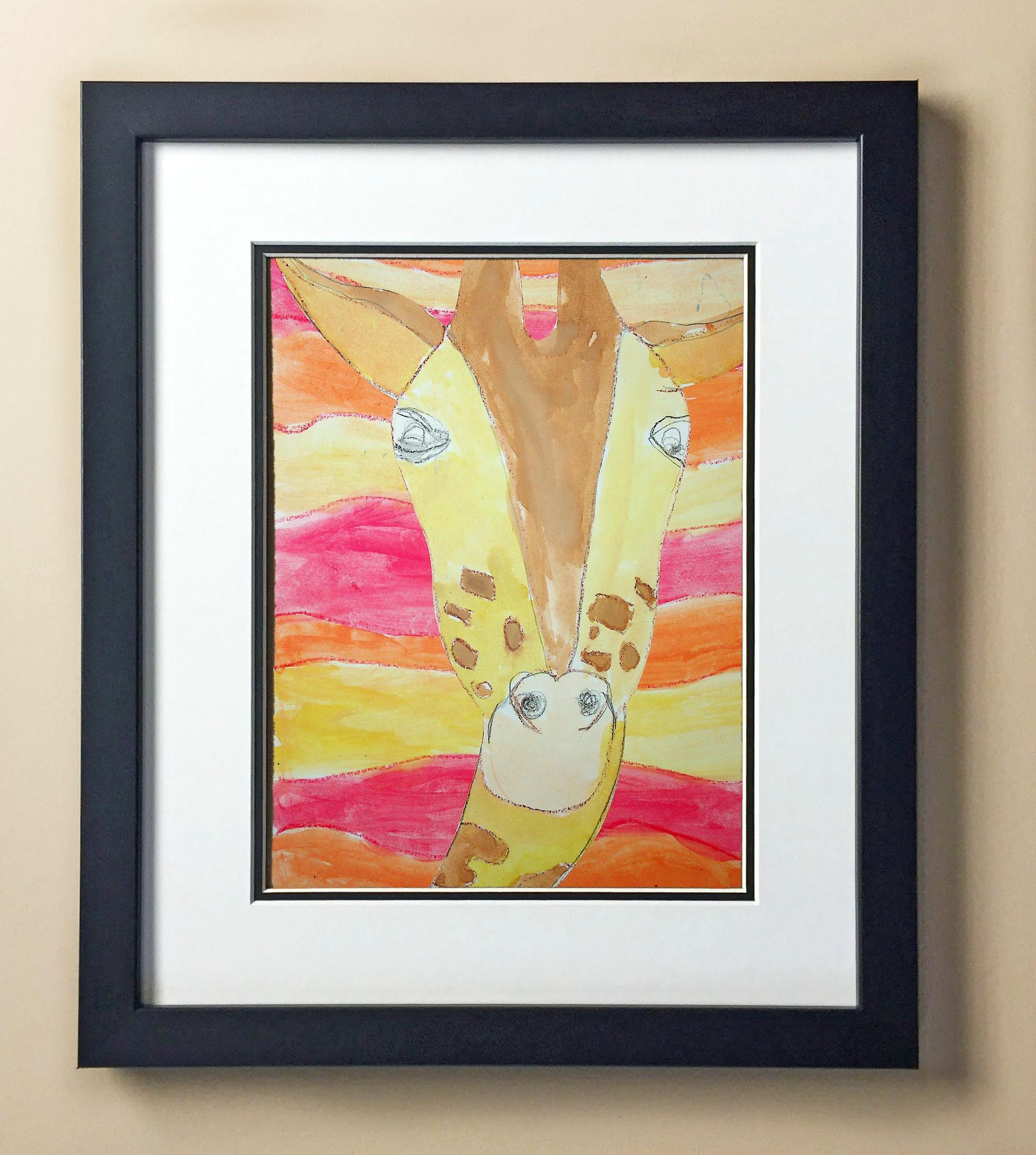 Included with the purchase is the Students Artwork, Frame, double matboard, shatter proof plexiglass, and a ready to hang backerboard with turnbuttons
