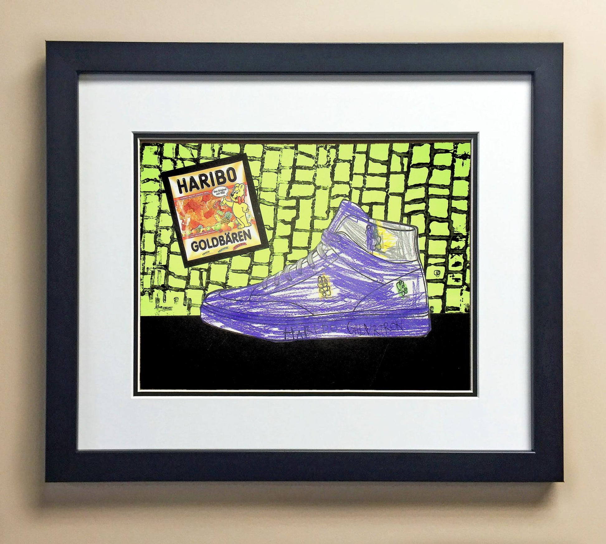 Included with the purchase is the Students Artwork, Frame, double matboard, shatter proof plexiglass, and a ready to hang backerboard with turnbuttons