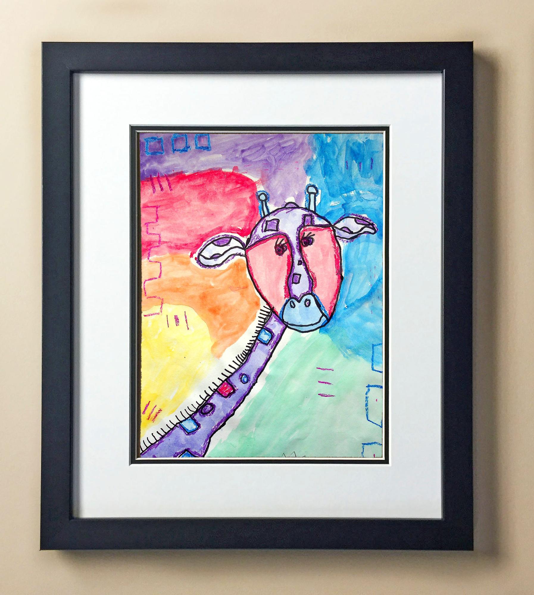 Included with the purchase is the Students Artwork, Frame, double matboard, shatter proof plexiglass, and a ready to hang backerboard with turnbuttons