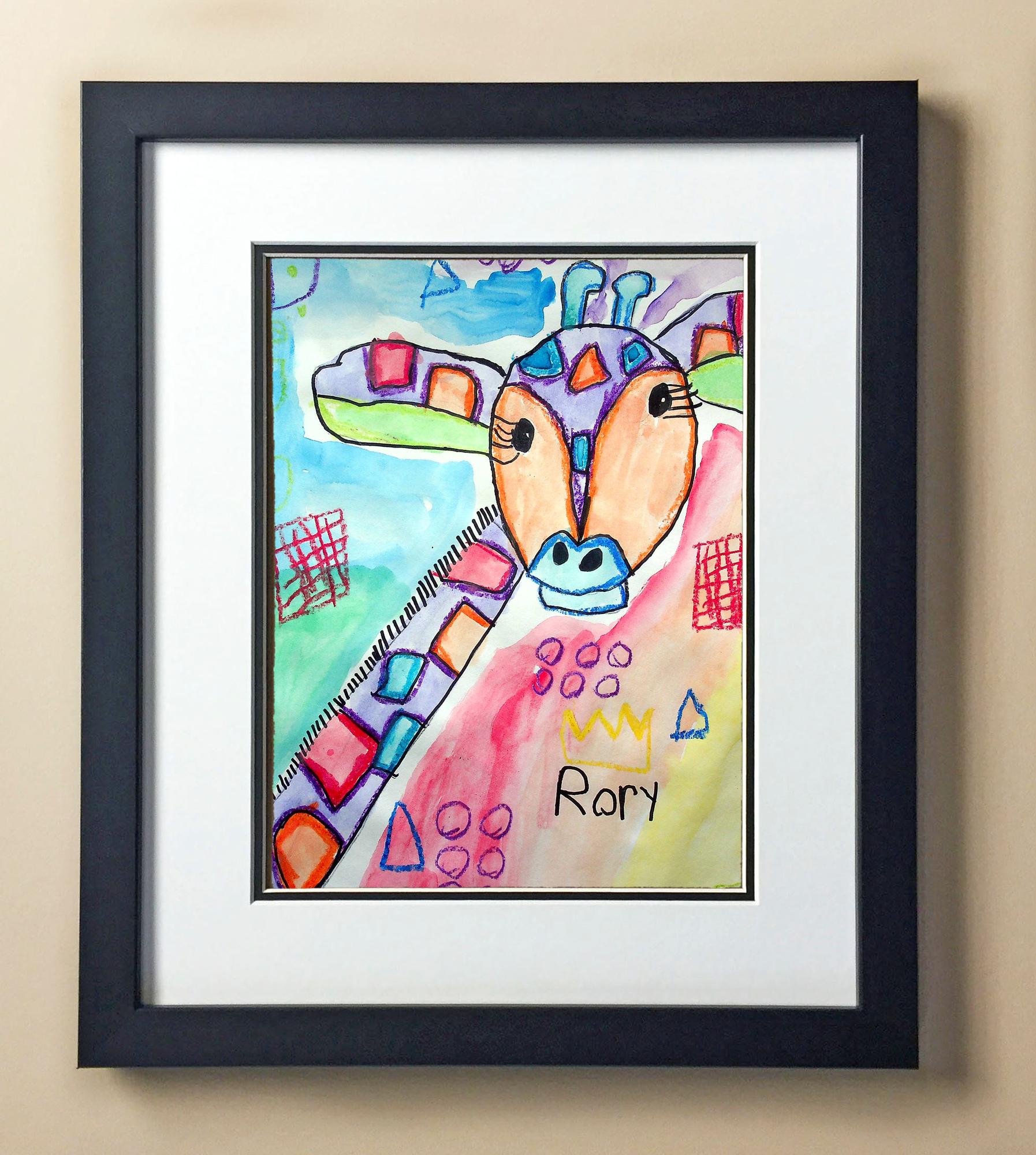 Included with the purchase is the Students Artwork, Frame, double matboard, shatter proof plexiglass, and a ready to hang backerboard with turnbuttons