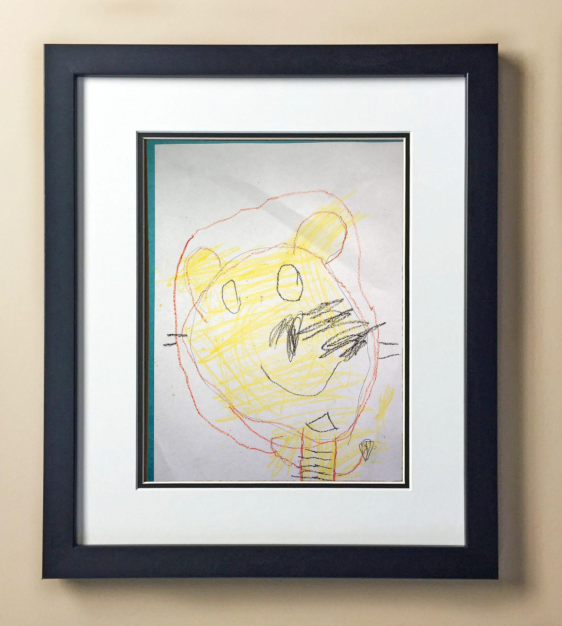Included with the purchase is the Students Artwork, Frame, double matboard, shatter proof plexiglass, and a ready to hang backerboard with turnbuttons