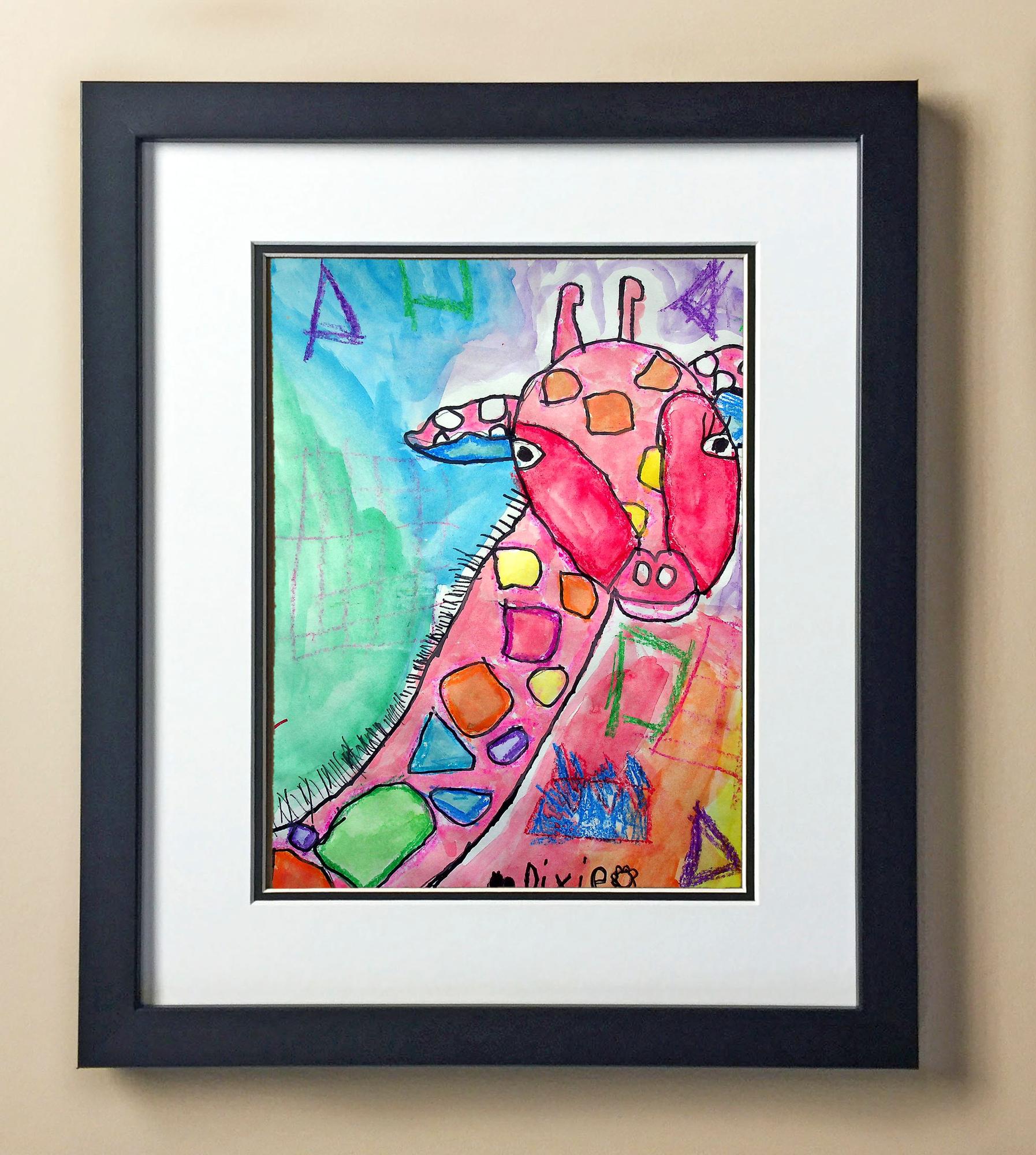 Included with the purchase is the Students Artwork, Frame, double matboard, shatter proof plexiglass, and a ready to hang backerboard with turnbuttons