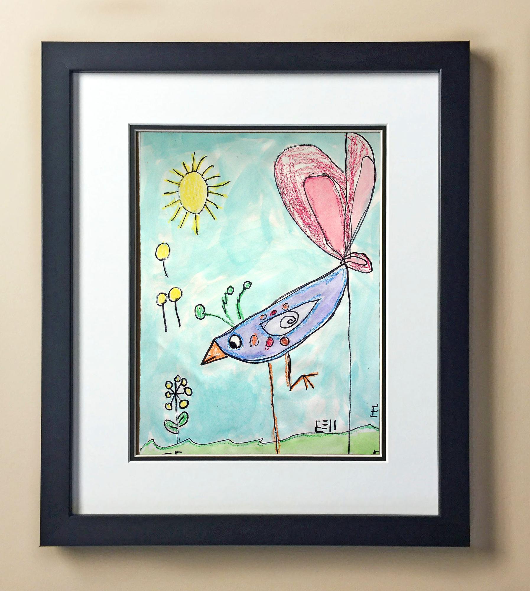 Included with the purchase is the Students Artwork, Frame, double matboard, shatter proof plexiglass, and a ready to hang backerboard with turnbuttons