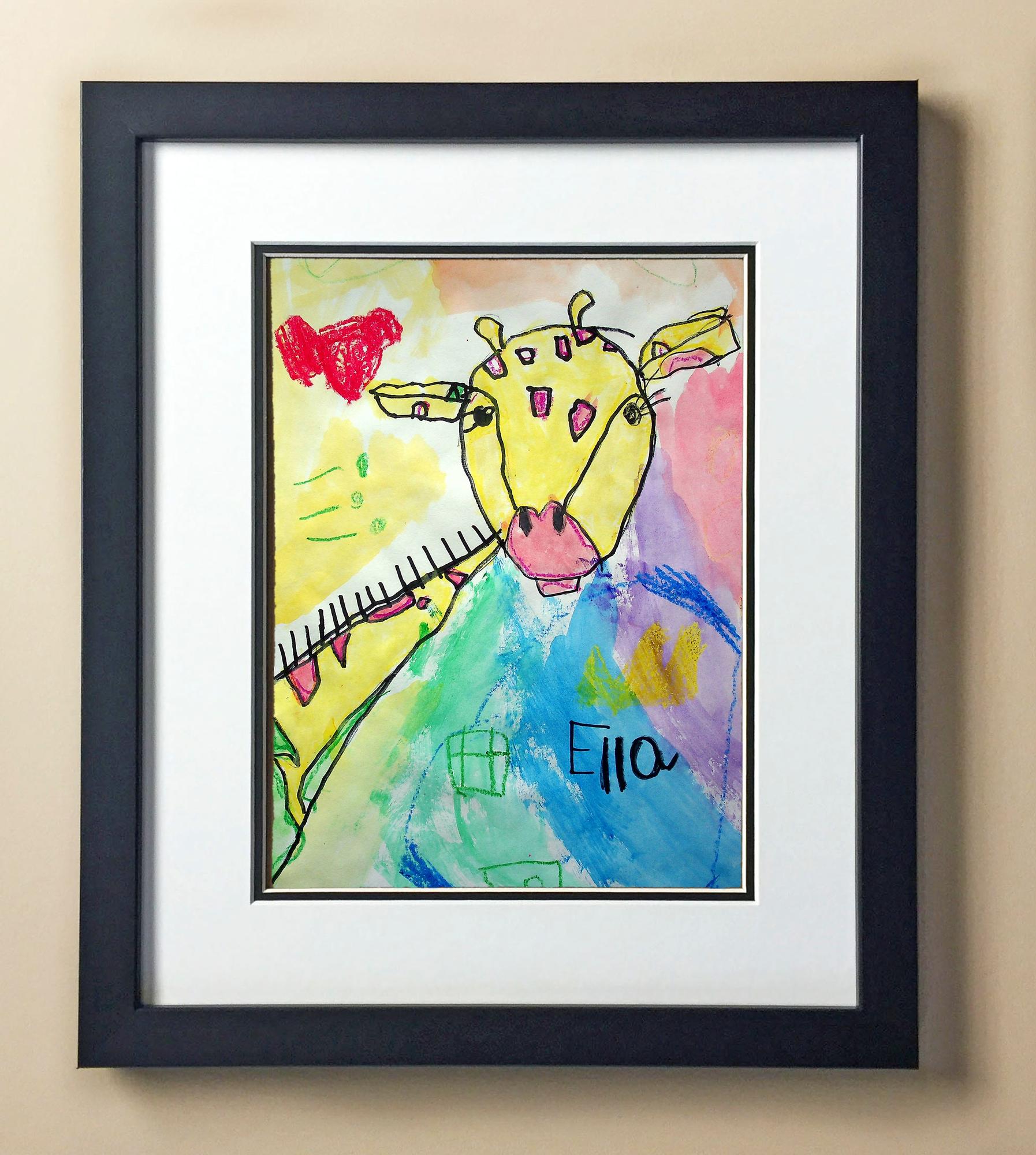 Included with the purchase is the Students Artwork, Frame, double matboard, shatter proof plexiglass, and a ready to hang backerboard with turnbuttons