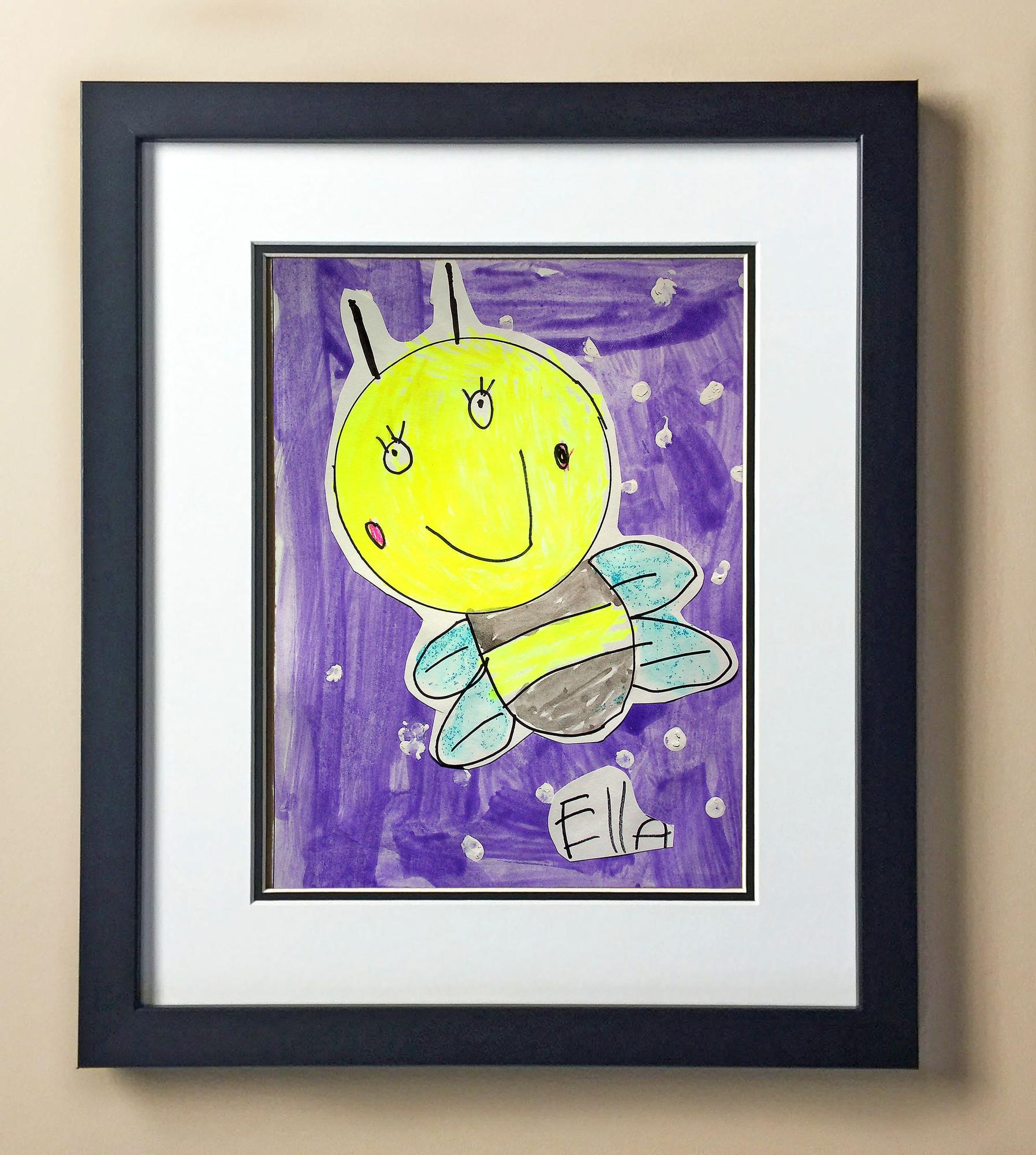 Included with the purchase is the Students Artwork, Frame, double matboard, shatter proof plexiglass, and a ready to hang backerboard with turnbuttons