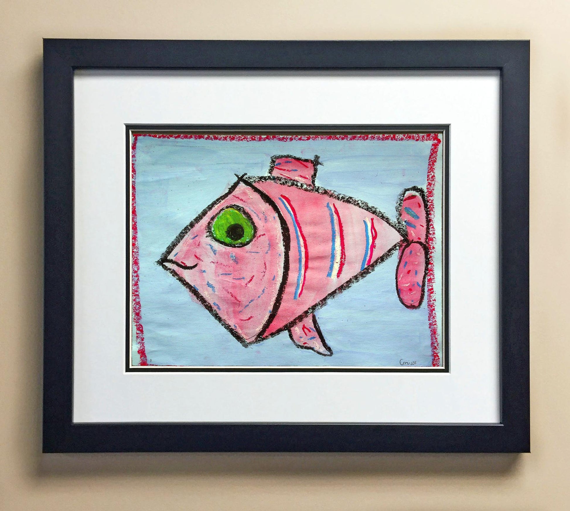 Included with the purchase is the Students Artwork, Frame, double matboard, shatter proof plexiglass, and a ready to hang backerboard with turnbuttons