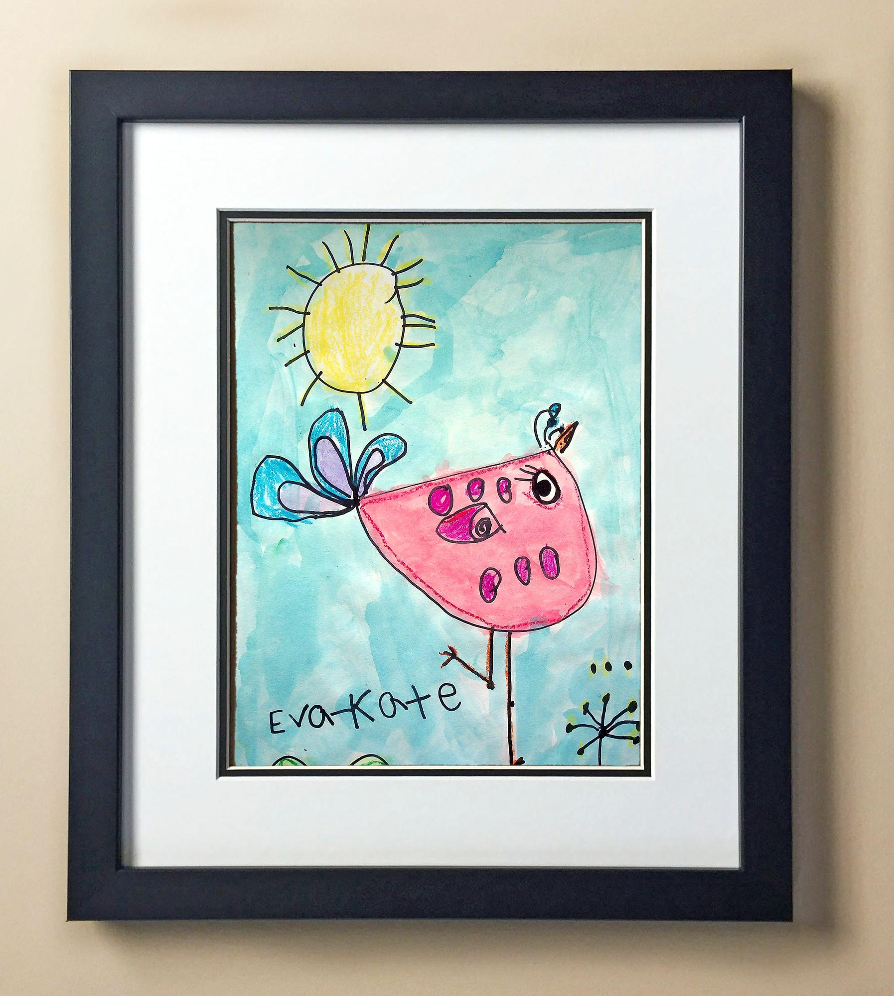 Included with the purchase is the Students Artwork, Frame, double matboard, shatter proof plexiglass, and a ready to hang backerboard with turnbuttons