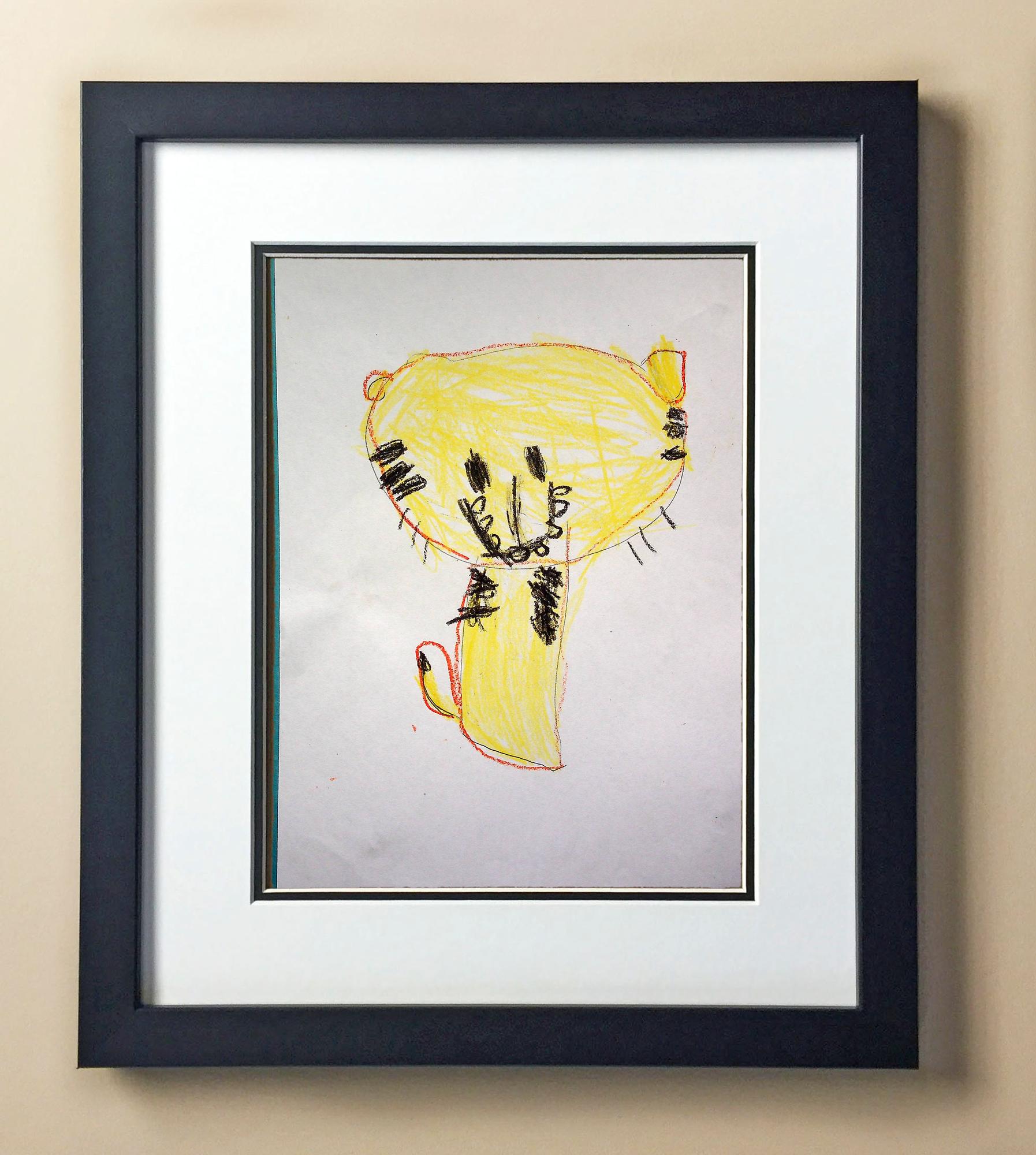 Included with the purchase is the Students Artwork, Frame, double matboard, shatter proof plexiglass, and a ready to hang backerboard with turnbuttons