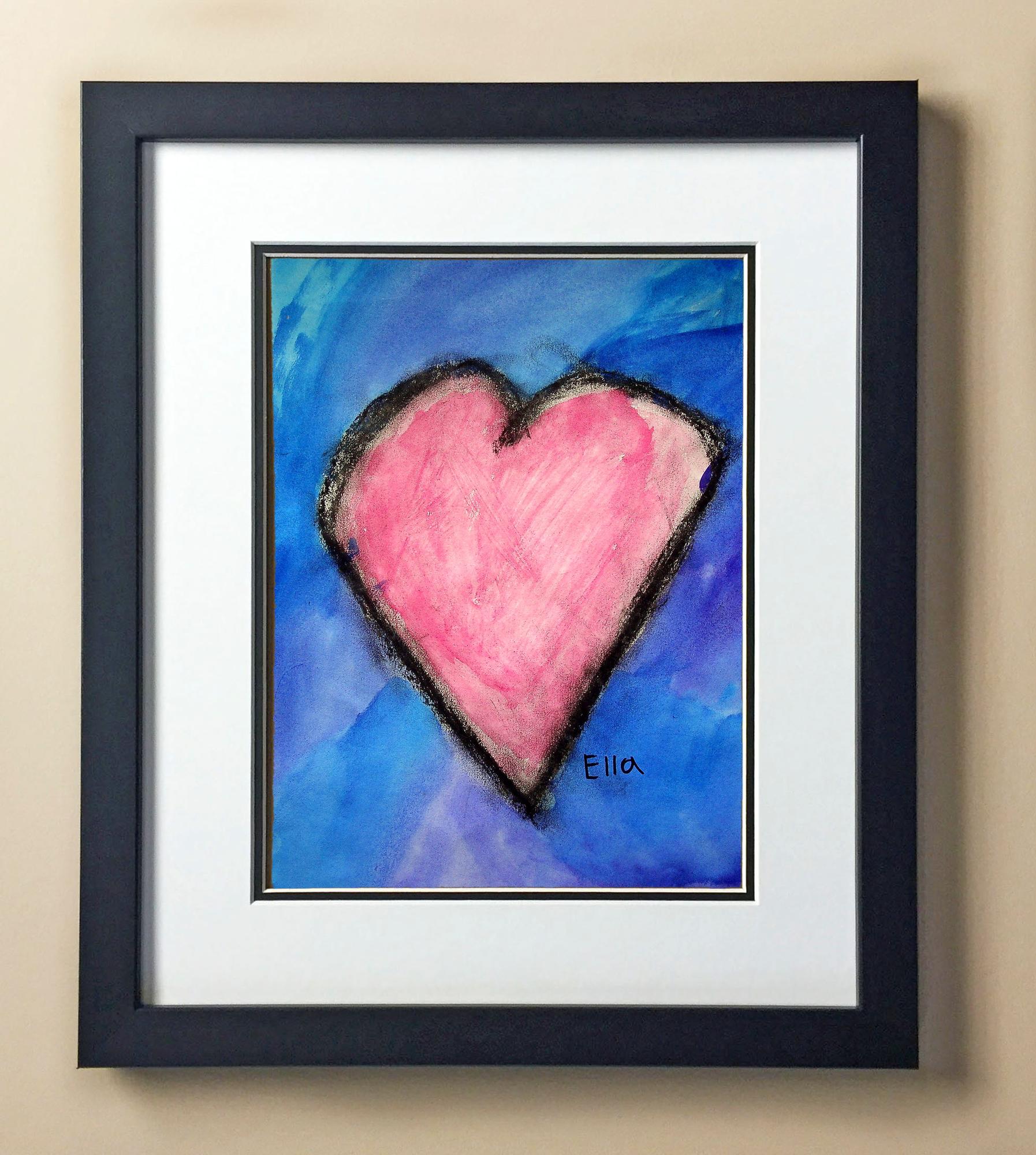 Included with the purchase is the Students Artwork, Frame, double matboard, shatter proof plexiglass, and a ready to hang backerboard with turnbuttons