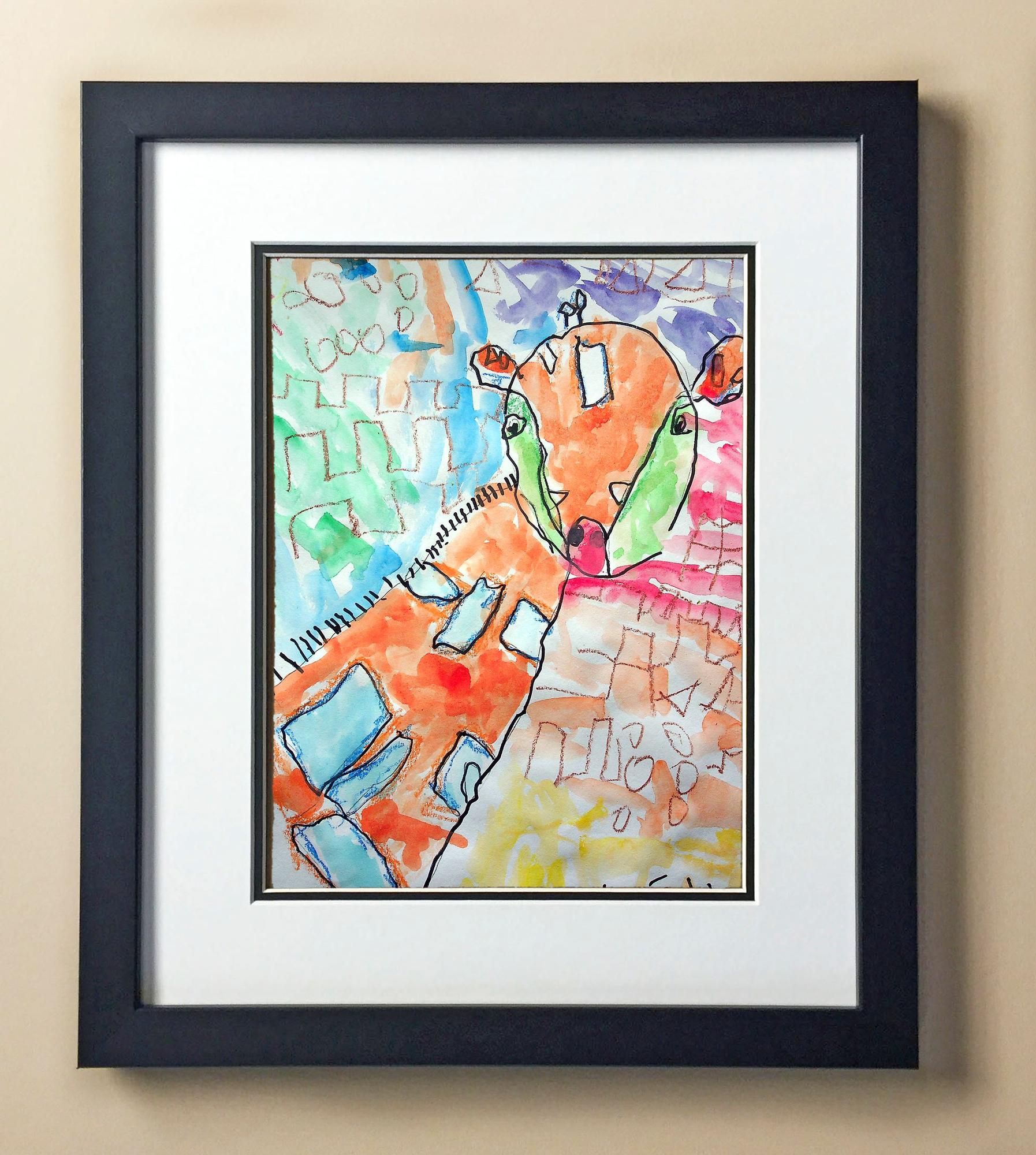Included with the purchase is the Students Artwork, Frame, double matboard, shatter proof plexiglass, and a ready to hang backerboard with turnbuttons