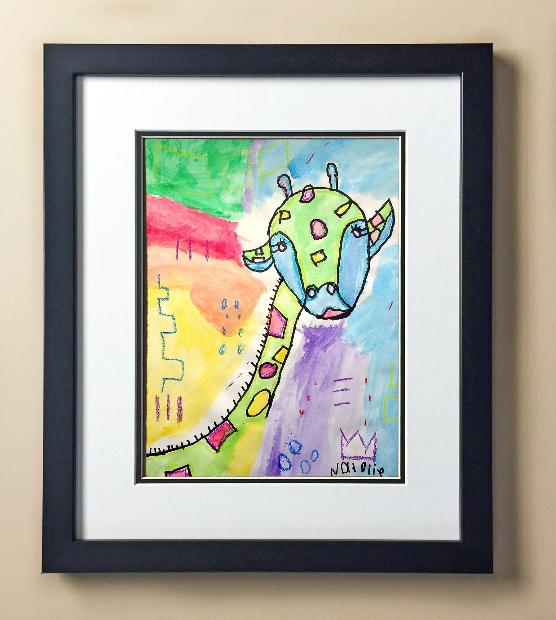 Included with the purchase is the Students Artwork, Frame, double matboard, shatter proof plexiglass, and a ready to hang backerboard with turnbuttons