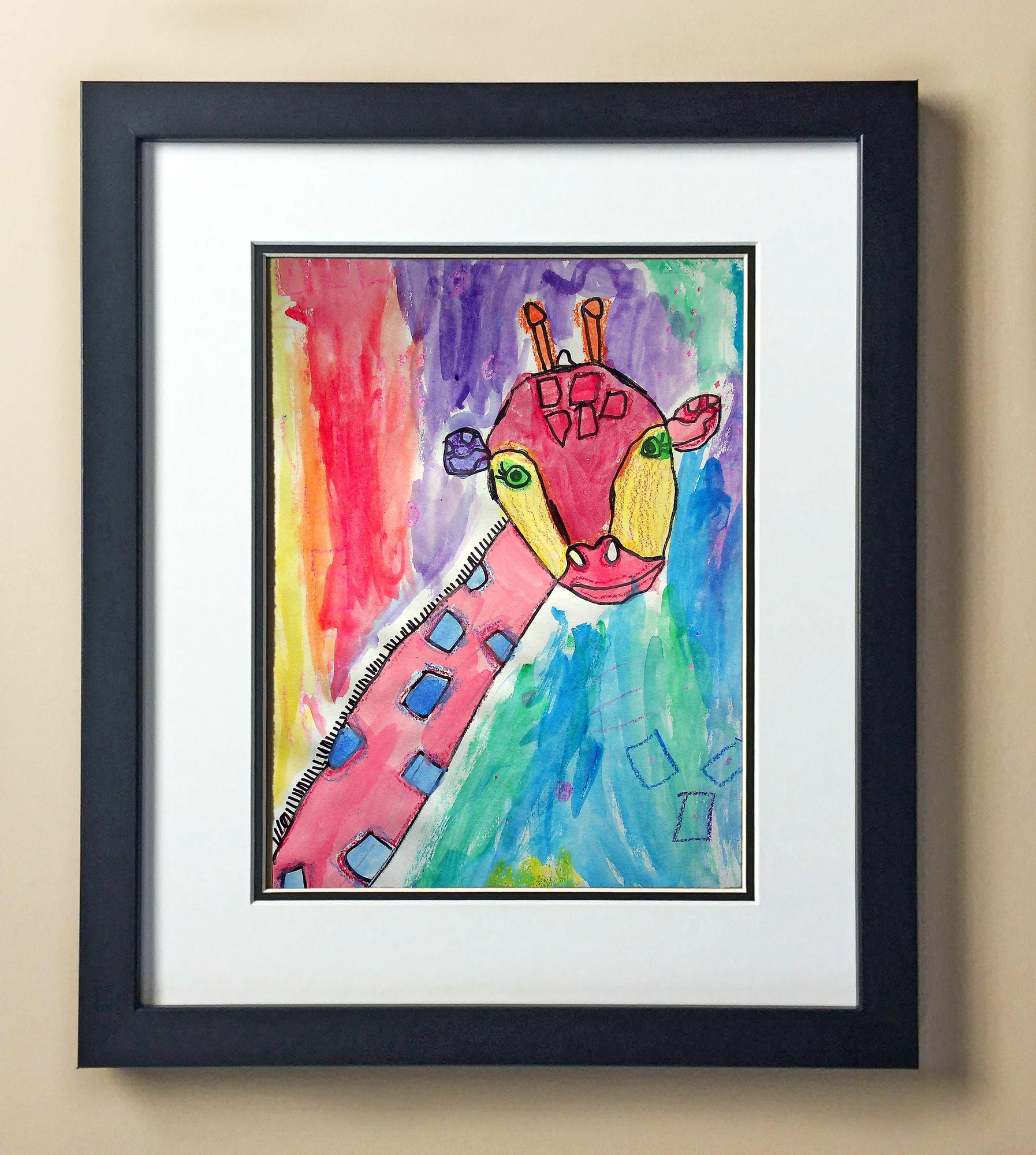 Included with the purchase is the Students Artwork, Frame, double matboard, shatter proof plexiglass, and a ready to hang backerboard with turnbuttons