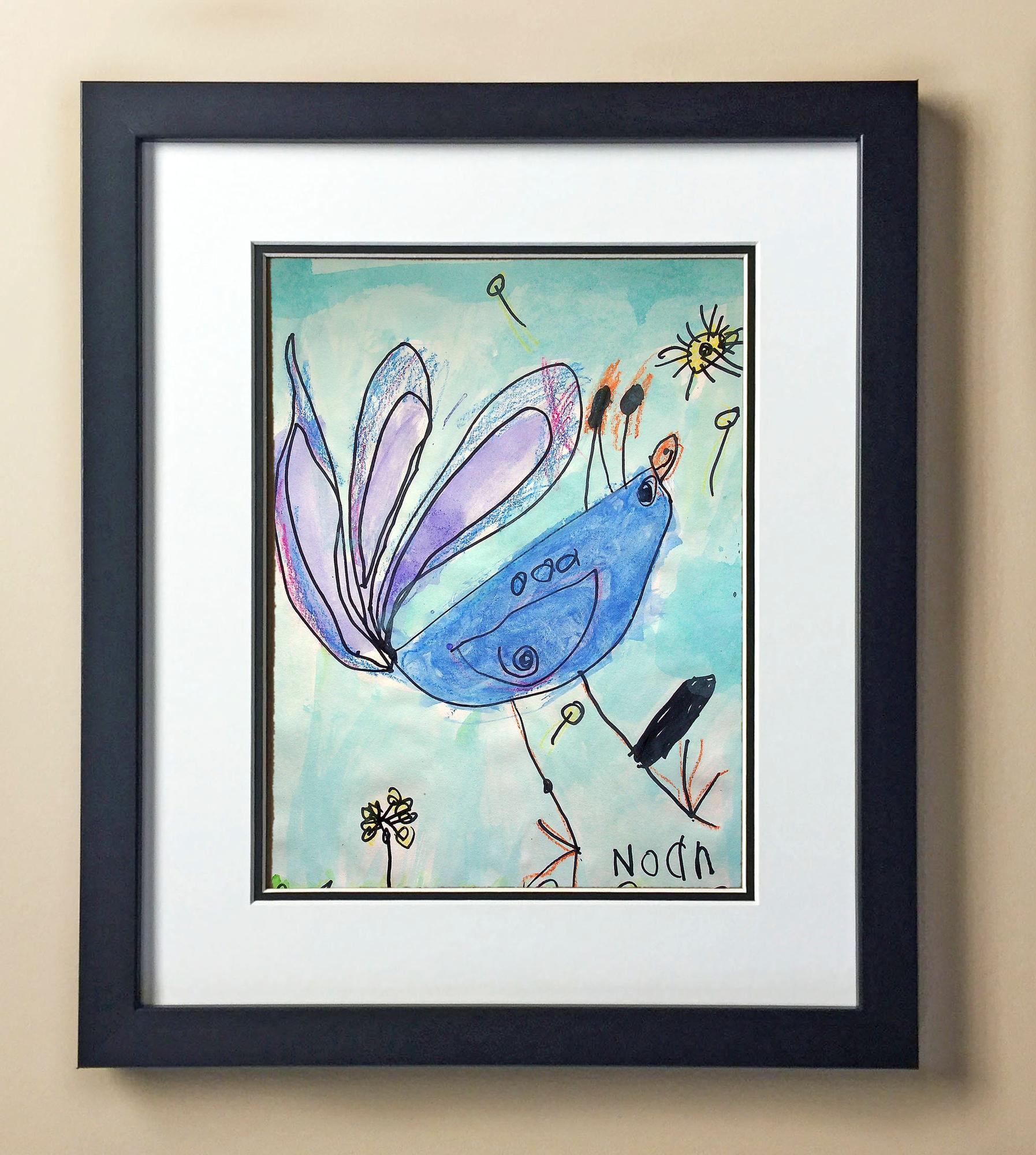 Included with the purchase is the Students Artwork, Frame, double matboard, shatter proof plexiglass, and a ready to hang backerboard with turnbuttons