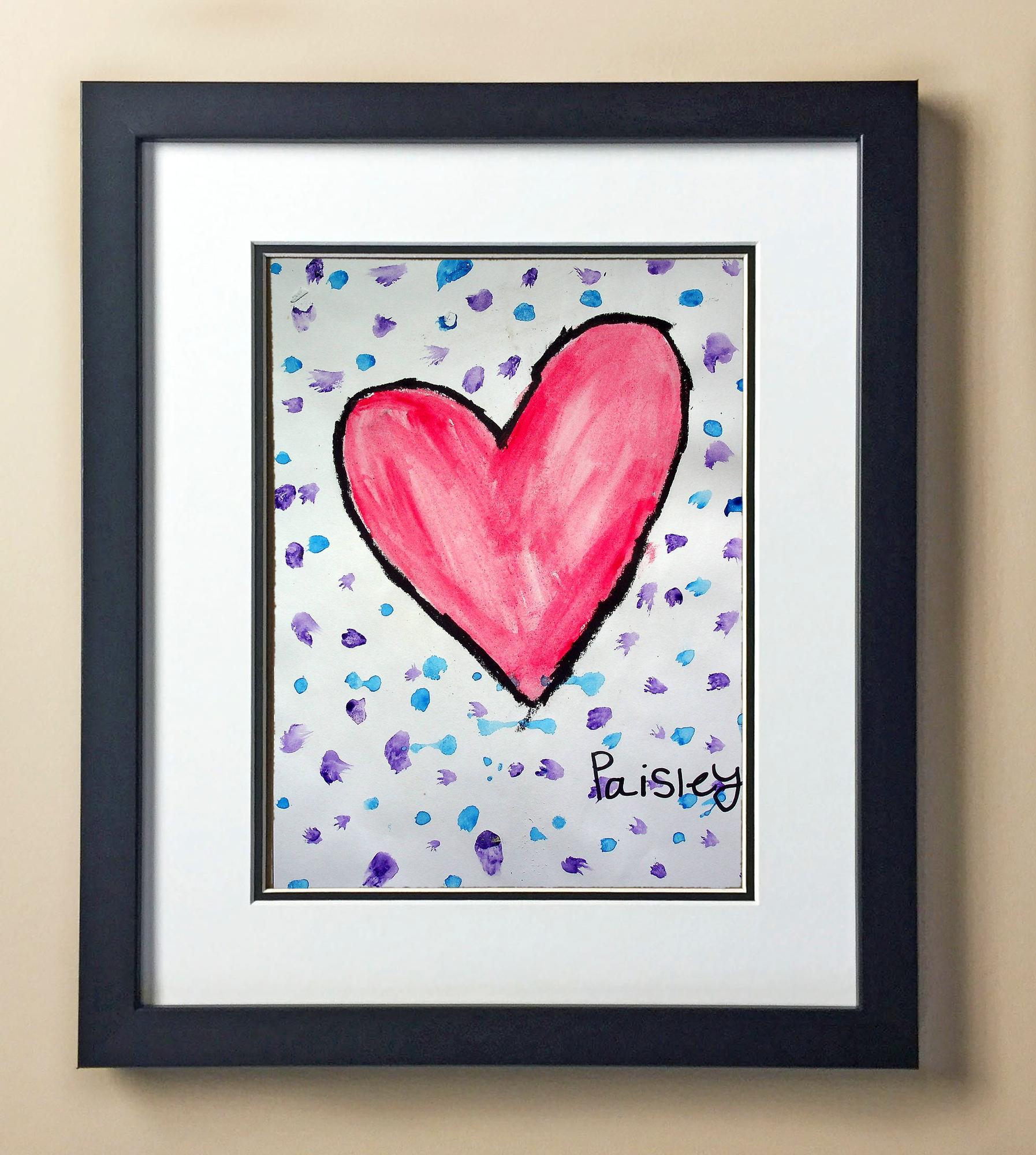 Included with the purchase is the Students Artwork, Frame, double matboard, shatter proof plexiglass, and a ready to hang backerboard with turnbuttons