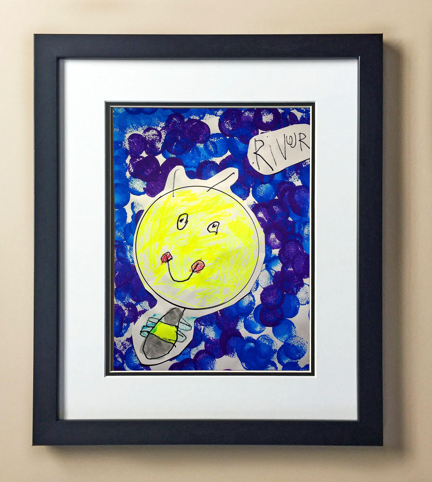 Included with the purchase is the Students Artwork, Frame, double matboard, shatter proof plexiglass, and a ready to hang backerboard with turnbuttons