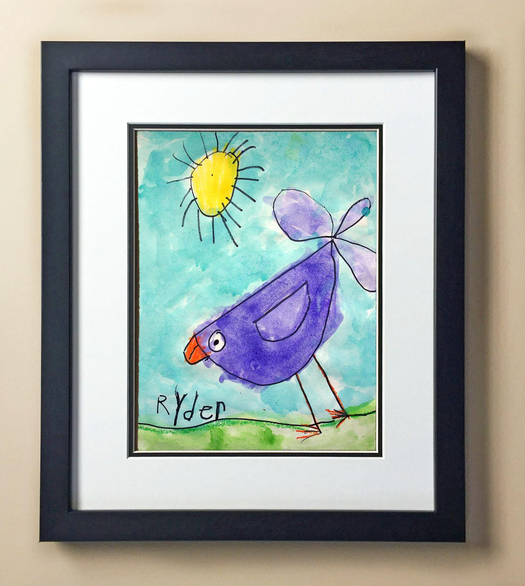 Included with the purchase is the Students Artwork, Frame, double matboard, shatter proof plexiglass, and a ready to hang backerboard with turnbuttons