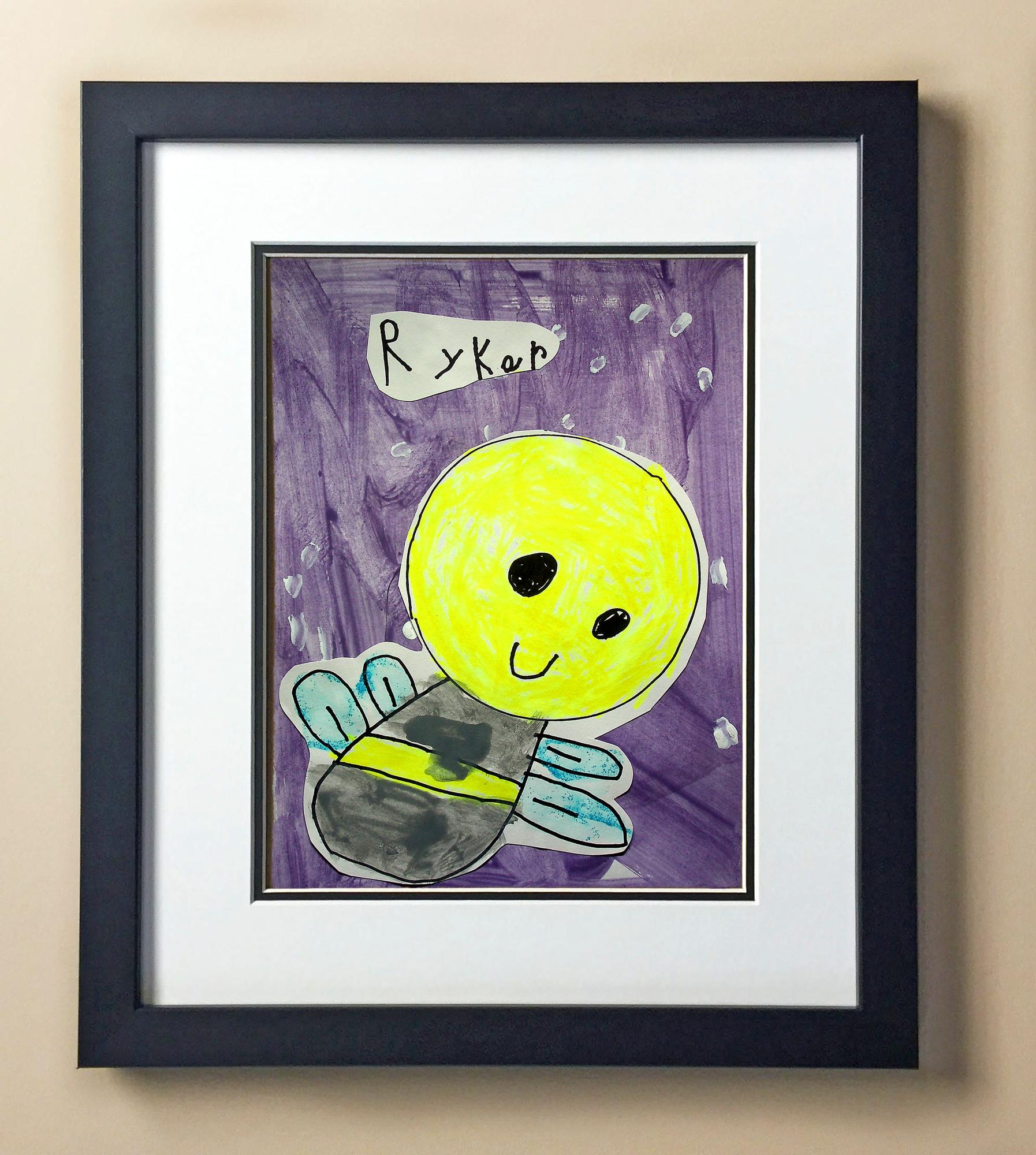 Included with the purchase is the Students Artwork, Frame, double matboard, shatter proof plexiglass, and a ready to hang backerboard with turnbuttons