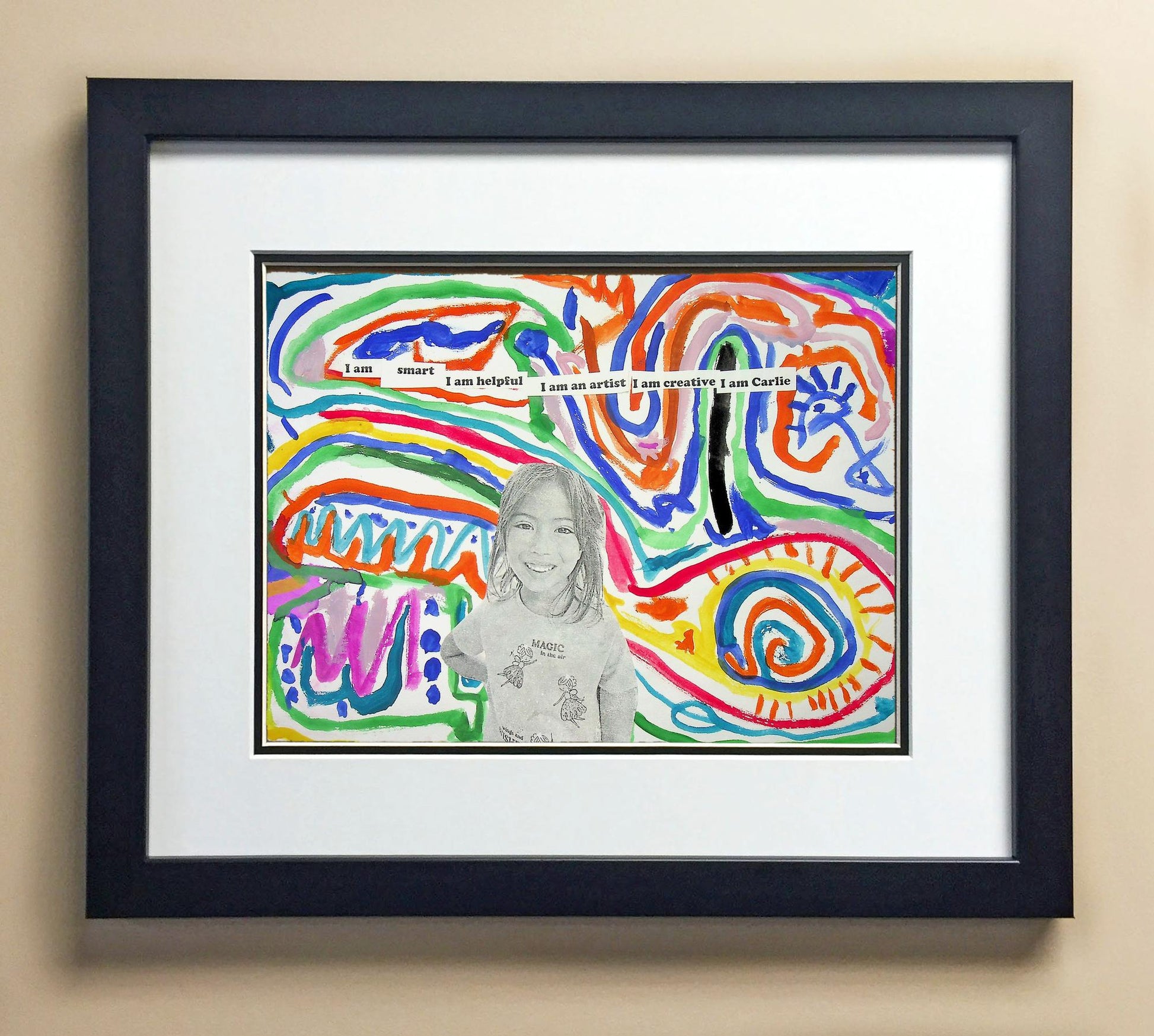 Included with the purchase is the Students Artwork, Frame, double matboard, shatter proof plexiglass, and a ready to hang backerboard with turnbuttons