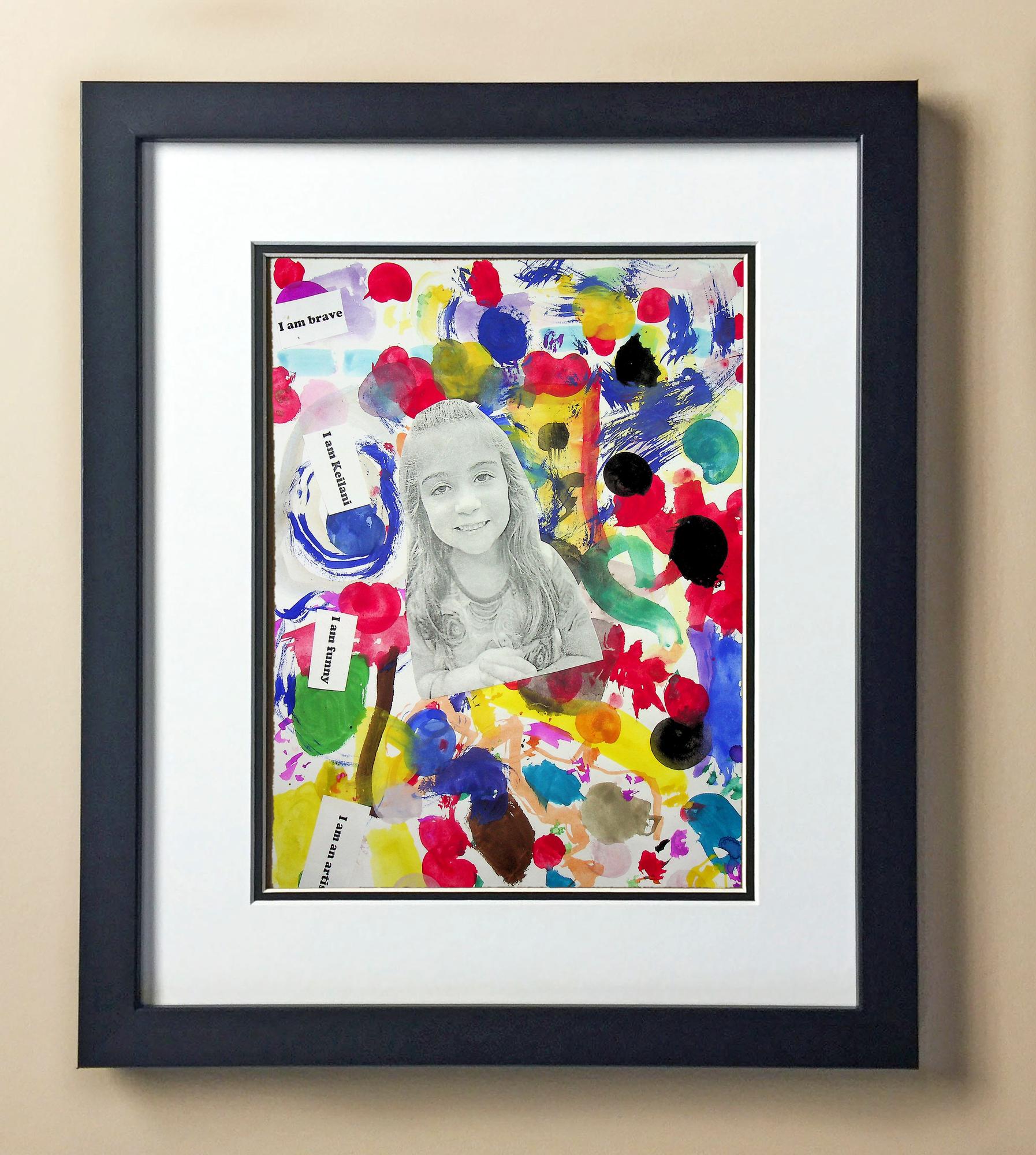 Included with the purchase is the Students Artwork, Frame, double matboard, shatter proof plexiglass, and a ready to hang backerboard with turnbuttons