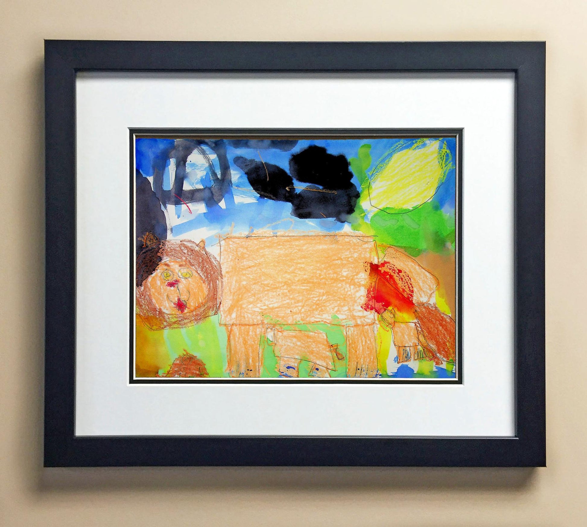Included with the purchase is the Students Artwork, Frame, double matboard, shatter proof plexiglass, and a ready to hang backerboard with turnbuttons