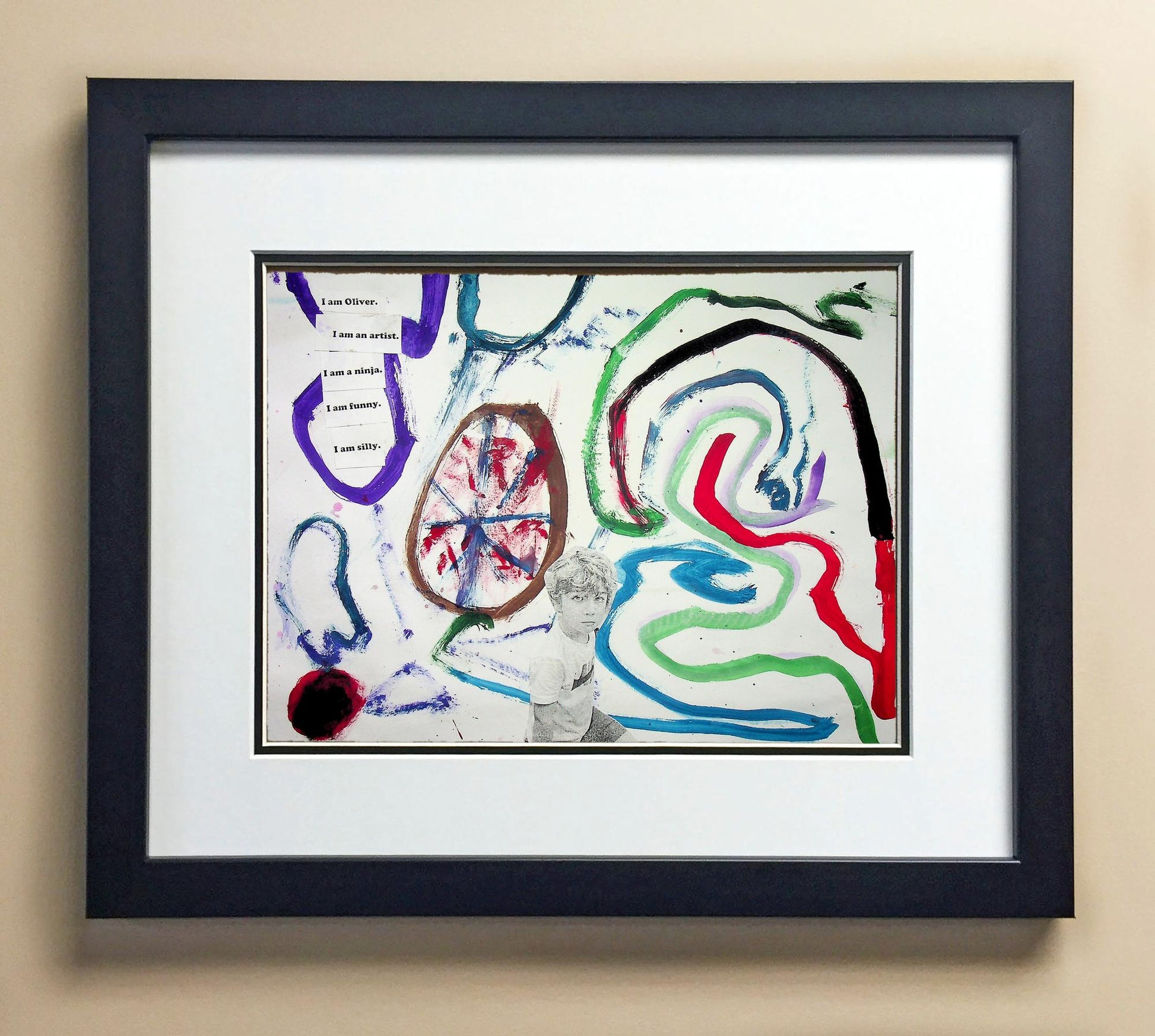 Included with the purchase is the Students Artwork, Frame, double matboard, shatter proof plexiglass, and a ready to hang backerboard with turnbuttons
