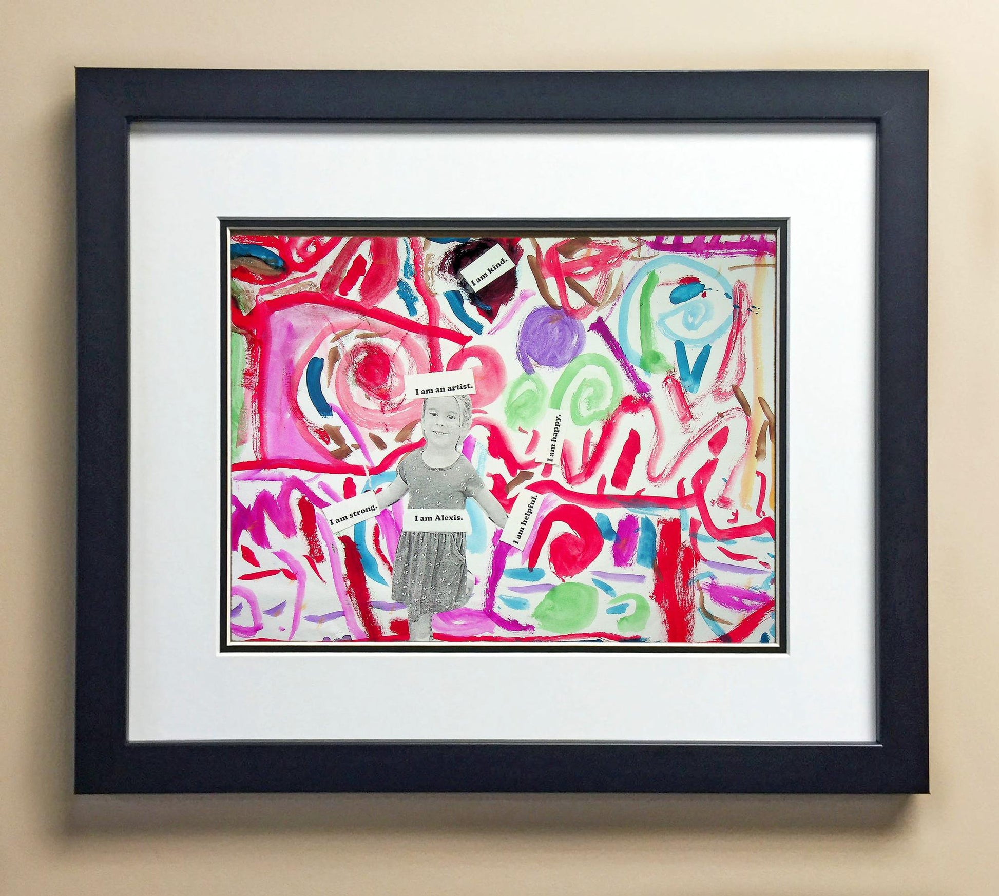 Included with the purchase is the Students Artwork, Frame, double matboard, shatter proof plexiglass, and a ready to hang backerboard with turnbuttons