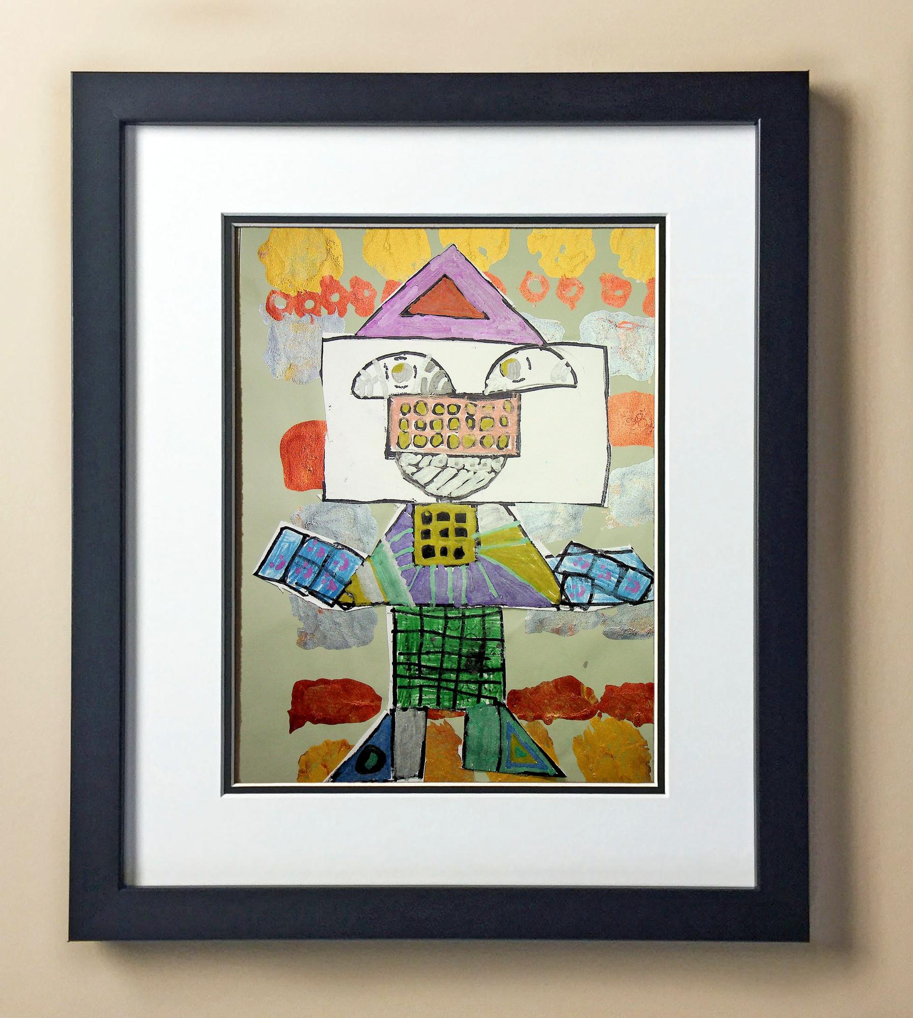 Included with the purchase is the Students Artwork, Frame, double matboard, shatter proof plexiglass, and a ready to hang backerboard with turnbuttons