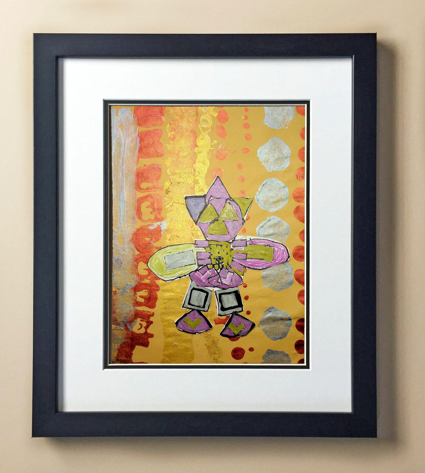 Included with the purchase is the Students Artwork, Frame, double matboard, shatter proof plexiglass, and a ready to hang backerboard with turnbuttons