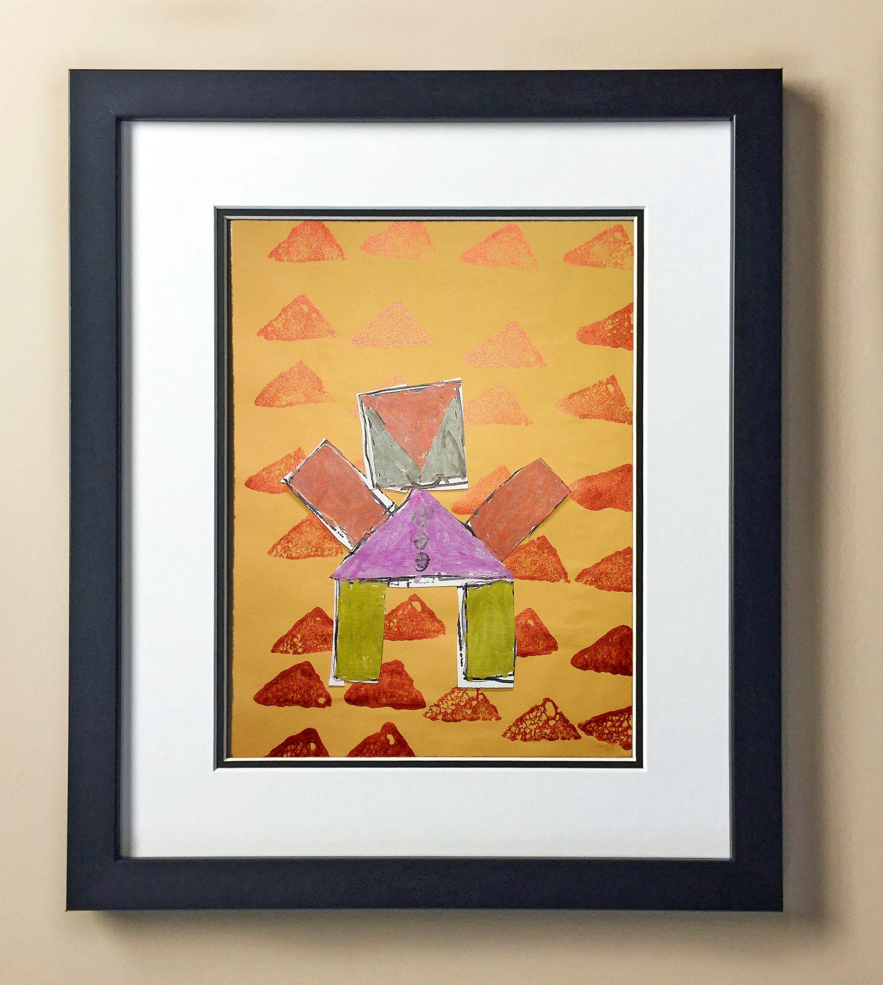 Included with the purchase is the Students Artwork, Frame, double matboard, shatter proof plexiglass, and a ready to hang backerboard with turnbuttons